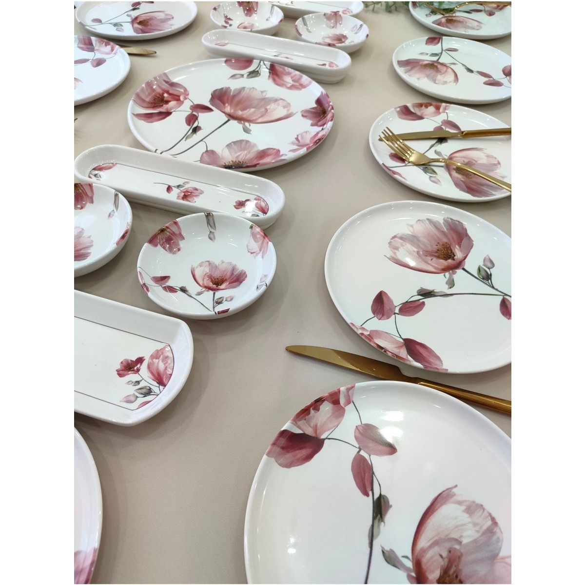 Çiçek desenleriyle süslenmiş zarif tasarımıyla sofralarınıza bahar tazeliği getirir; Mikrodalgada güvenle kullanılabilme özelliği sayesinde pratik ve hızlı ısıtma imkanı sunar; Yuvarlak formu ile klasik ve zamansız bir görünüm sağlar, her türlü sofra düzenine kolayca uyum sağlar; Yüksek kaliteli seramik malzemesi, dayanıklılığı ve uzun ömürlü kullanımı garanti eder; 12 kişilik geniş kapasitesi ile aile ve arkadaşlarınızla keyifli kahvaltılar için idealdir;