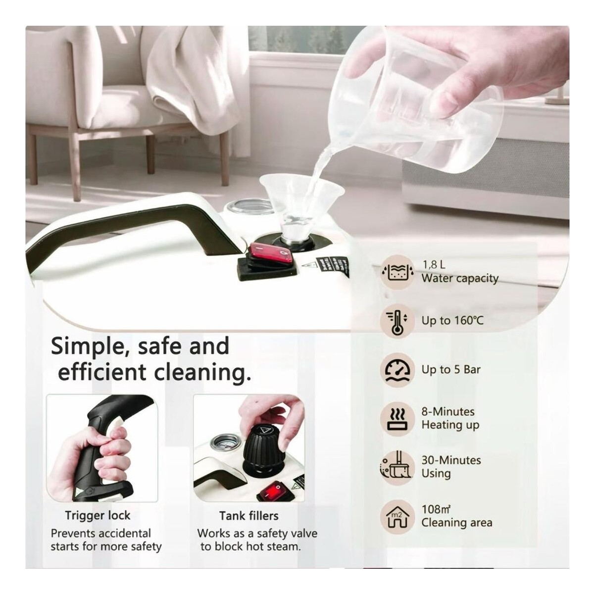 Çok Fonksiyonlu Beyaz Buharlı Temizleyici, Pratik ve Güçlü Temizlik Araçları