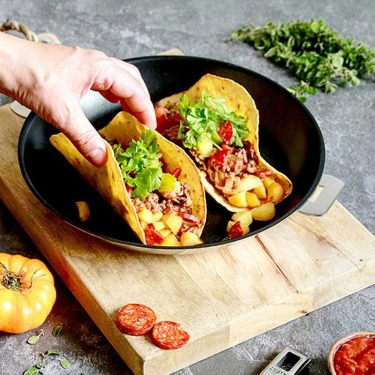 - Çıkarılabilir kulpları sayesinde fırın kabı olarak da kullanılabilir.