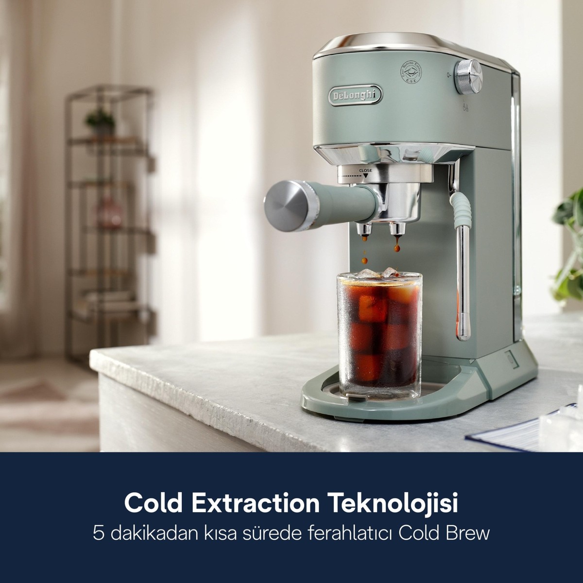 • DEDICA DUO DE’LONGHI, 15 bar basınca sahip ısıtma sistemiyle dilediğiniz yoğunlukta espresso hazırlamanıza olanak tanır. Yüksek kapasiteli filtreleri sayesinde daha güçlü ve lezzetli kahveler elde edebilirsiniz. Arka aydınlatmalı simgelerle donatılmış kontrol paneli, kullanımı kolaylaştırır.