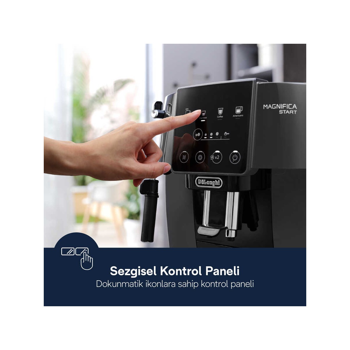 Tek dokunuşla kahve içecekleri için siyah beyaz simgeler içeren sezgisel yumuşak dokunmatik kontrol paneli sayesinde kolay kullanıcı etkileşiminin keyfini çıkarın.