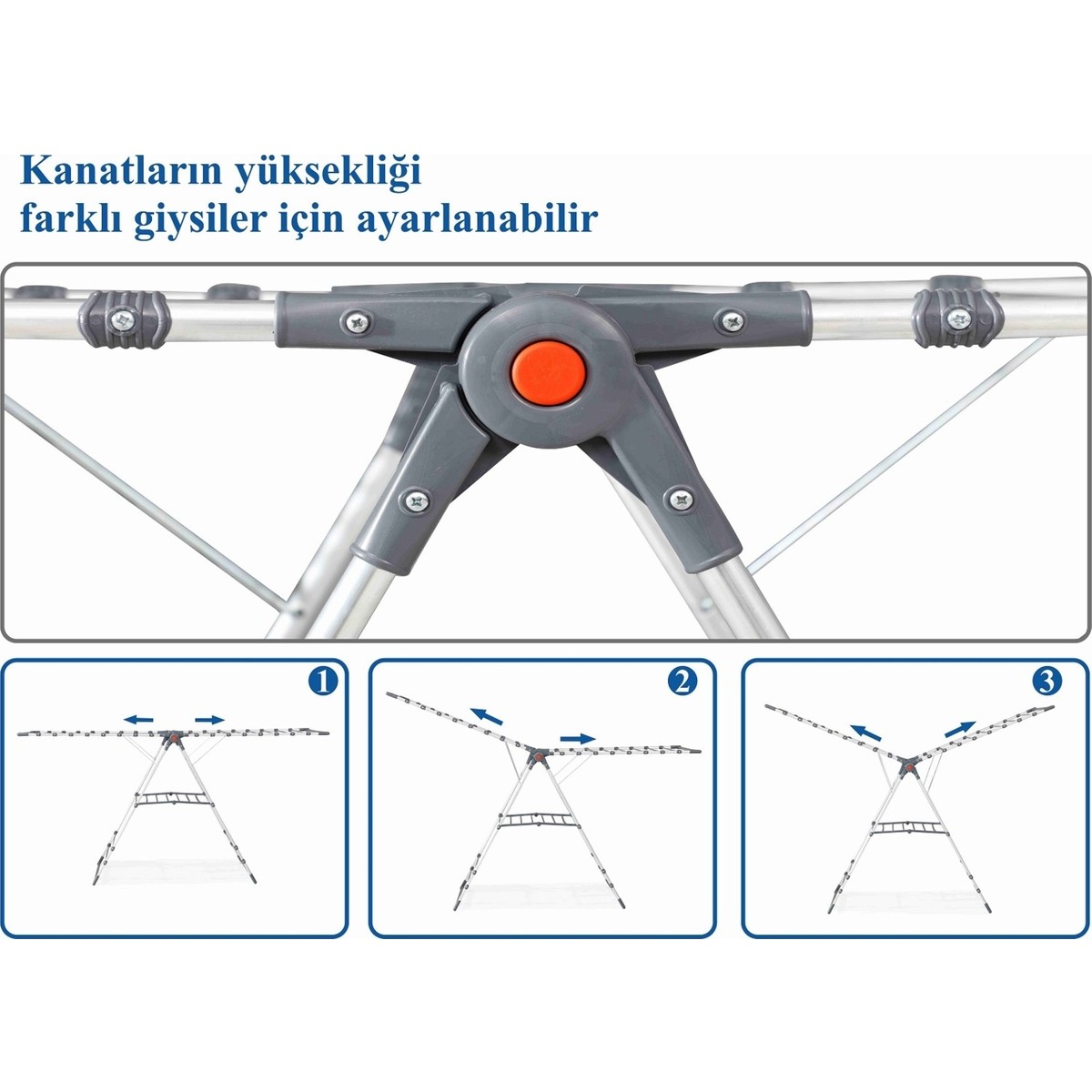 Ürün gayet güzel, sağlam ve kaliteli duruyor, boyut olarakta büyük çok çamaşır asılabiliyor, sadece alttaki siyah askılı plastik, metal olsa daha iyi olabilirdi. Bir tarafa çamaşır asınca devrilmiyor devrilmiyor dengeli, kargo çok hızlı, paketleme mükemmel tavsiye ederim