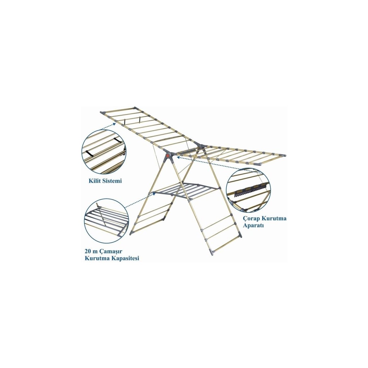Devecioğlu Harbinger Apex Gold 20 m Kapasiteli Isıya Dayanıklı Elektrostatik Boyalı Metal Çamaşır Kurutmalık