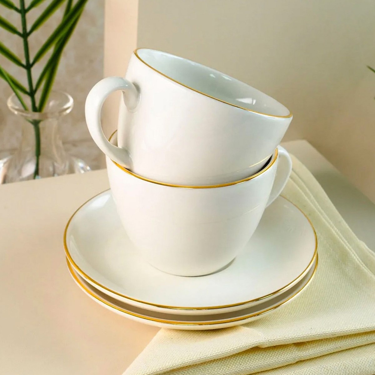 Digithome Aryıldız Alicia Luna 4 Parça Gold Detaylı 2 Kişilik Fincan Takımı Krem