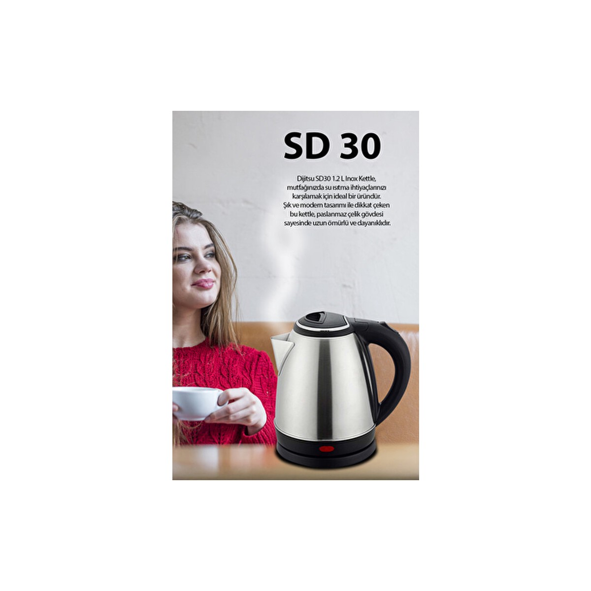 Dijitsu SD30 1.2 Lt. Kettle — hızlı su ısıtma ve modern tasarımı bir araya getirerek mutfağınıza hem şıklık hem de pratiklik kazandırır.