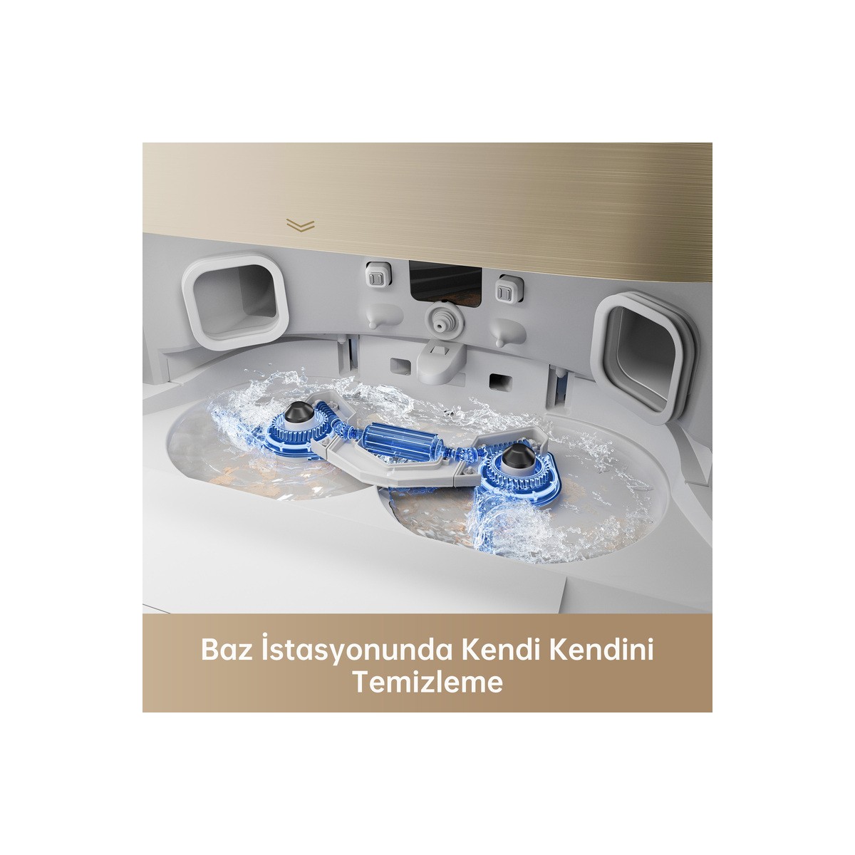 haritalandırmayı otomatik olarak yapıyor bütün evi taradıktan sonra temizliği yapıyor oda oda veya bölge bölge seçerek temizletebiliyorsunuz. İsterseniz belirli aralıklarla otomatik olarak temizlik yaptırabiliyorsunuz kenar ve köşeleri otomatik olarak algılayıp içinden parçası çıkıp süpürüp silebiliyor beş kademede temizlik yapabiliyor emiş gücü inanılmaz derecede yüksek büyük normal süpürgelerden daha güçlü çekiyor halıyı otomatik algılayıp paspaspetlerini kaldırabiliyor bu sayede hem süpürüp hem silebiliyor. Paspaspetlerini 85° sıcak suda yıkayabiliyor. Ancak bu ısı derecesini istediğiniz şekilde ayarlayabiliyorsunuz benim evim neti 133 metre² ama eşyalarla birlikte toplam 98 metre² süpürüyor siliyor ve şarjı %70‘lere düşüyor paspaspetlerini yıkadıktan sonra kirli su haznesini boşaltmak için ses uyarı veriyor. temizlik bittikten sonra da sesli uyarı veriyor şarj olurken de sesli uyarı veriyor kamerasını actiginiz zaman kamerasından da sürekli olarak kamera açık diye uyarı veriyor. toz boşaltmasını otomatik yapıyor. Yani ayda bir hazne filtre temizliği yapmak yeterli. Haftada bir de veya her seferinde sensörleri silmek gerekiyor. Onun dışında her şeyi kendisi otomatik yapıyor. İyi ki almışım. Almak isteyenler hiç tereddüt etmesin. Hiç daha pahalı veya başka marka almaya gerek yok.