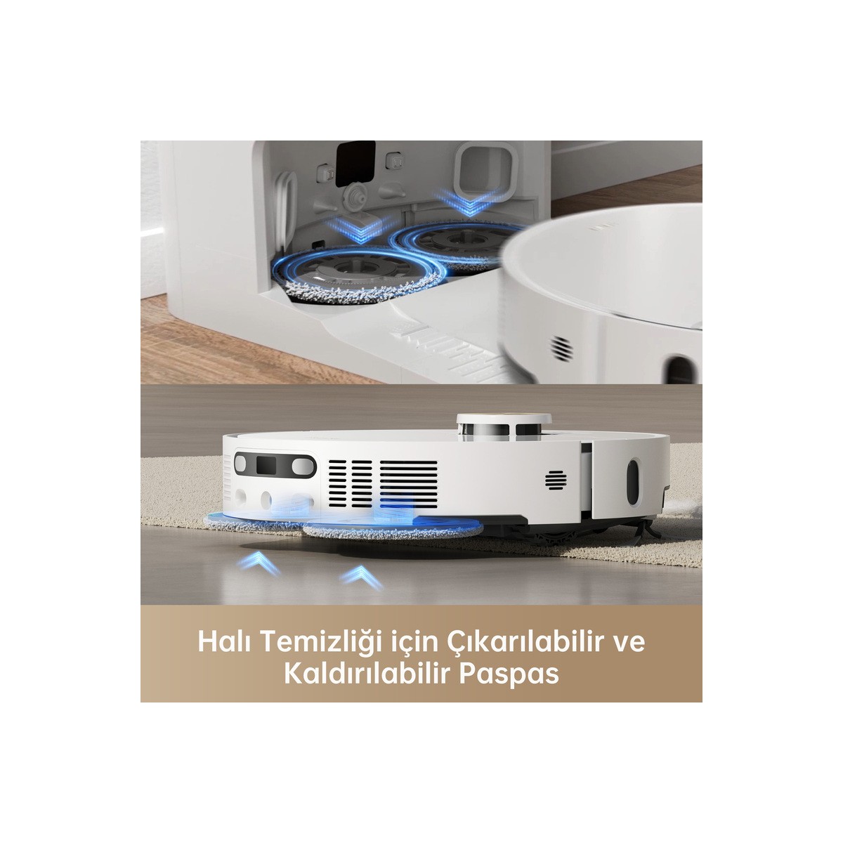 120 m²’lik evimizi sadece 12 dakikada haritaladı. Her şeyin detaylı bir ayarı var; ister sadece süpürtün, ister süpür-sil yaptırın, tamamen size kalmış. En güzel özelliklerinden birisi de süpürme sırasında moplarını istasyonda bırakabilmesi. Evde bazı zeminlerim seramik ve beyaz olduğu için silerken iz bırakmasından çekiniyordum, ama kesinlikle hem tertemiz yaptı hem de hiç iz bırakmadı. Ayrıca moplarını sıcak suyla temizleme özelliği mükemmel bir detay. Temizlik sonrası moplarını kontrol ettim, hala tertemizdi.