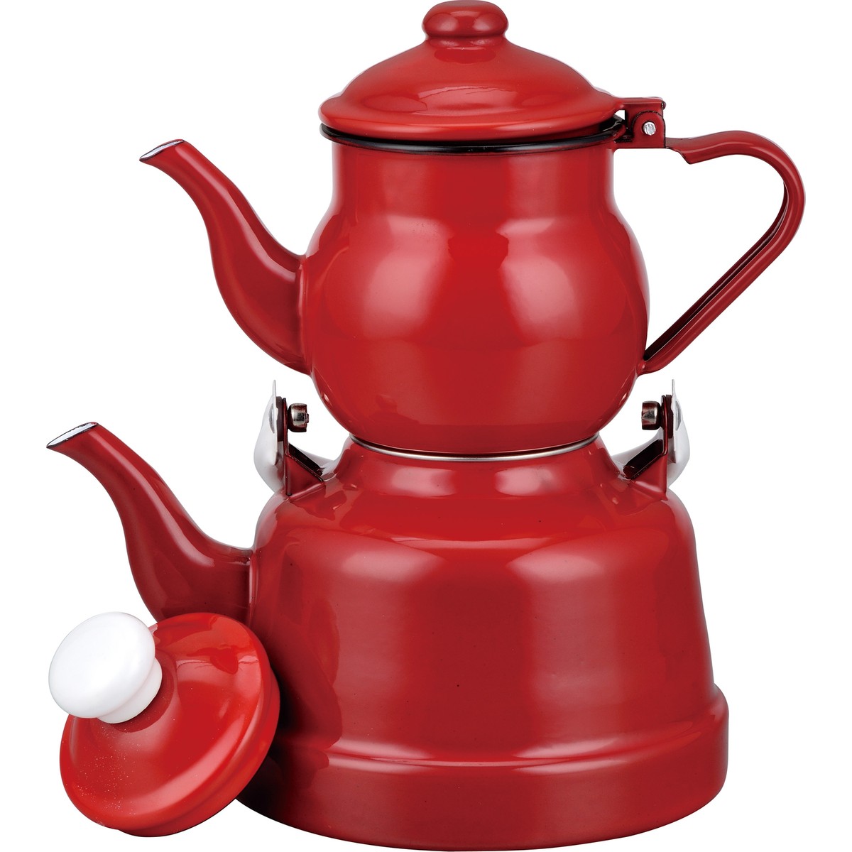 Ebru Metal Emaye Nostaljik Orta Boy Çaydanlık Takımı – Kırmızı (13-18)