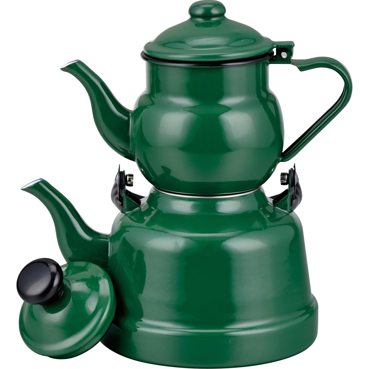 Ebru Metal Emaye Nostaljik Orta Boy Çaydanlık Takımı Yeşil Kolay Temizlenir 2,5 L 1,1 L için 17 değerlendirme
