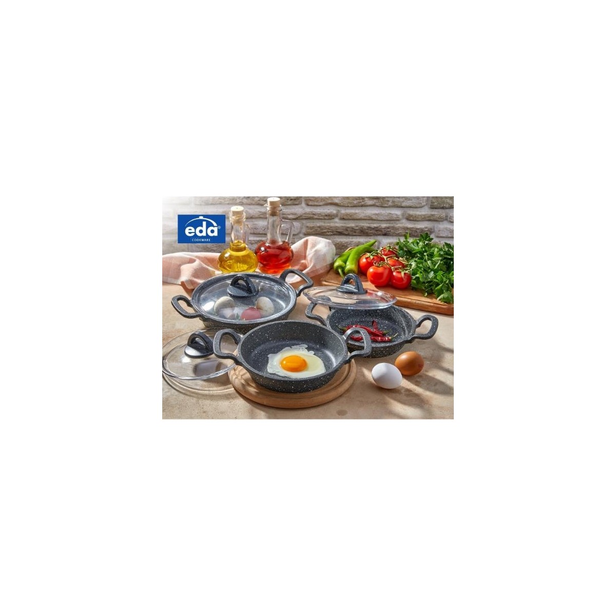 Eda  Asya 3’lü Granit Döküm Sahan Seti Cam Kapaklı  ZK-905