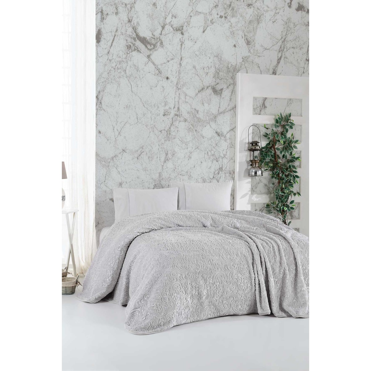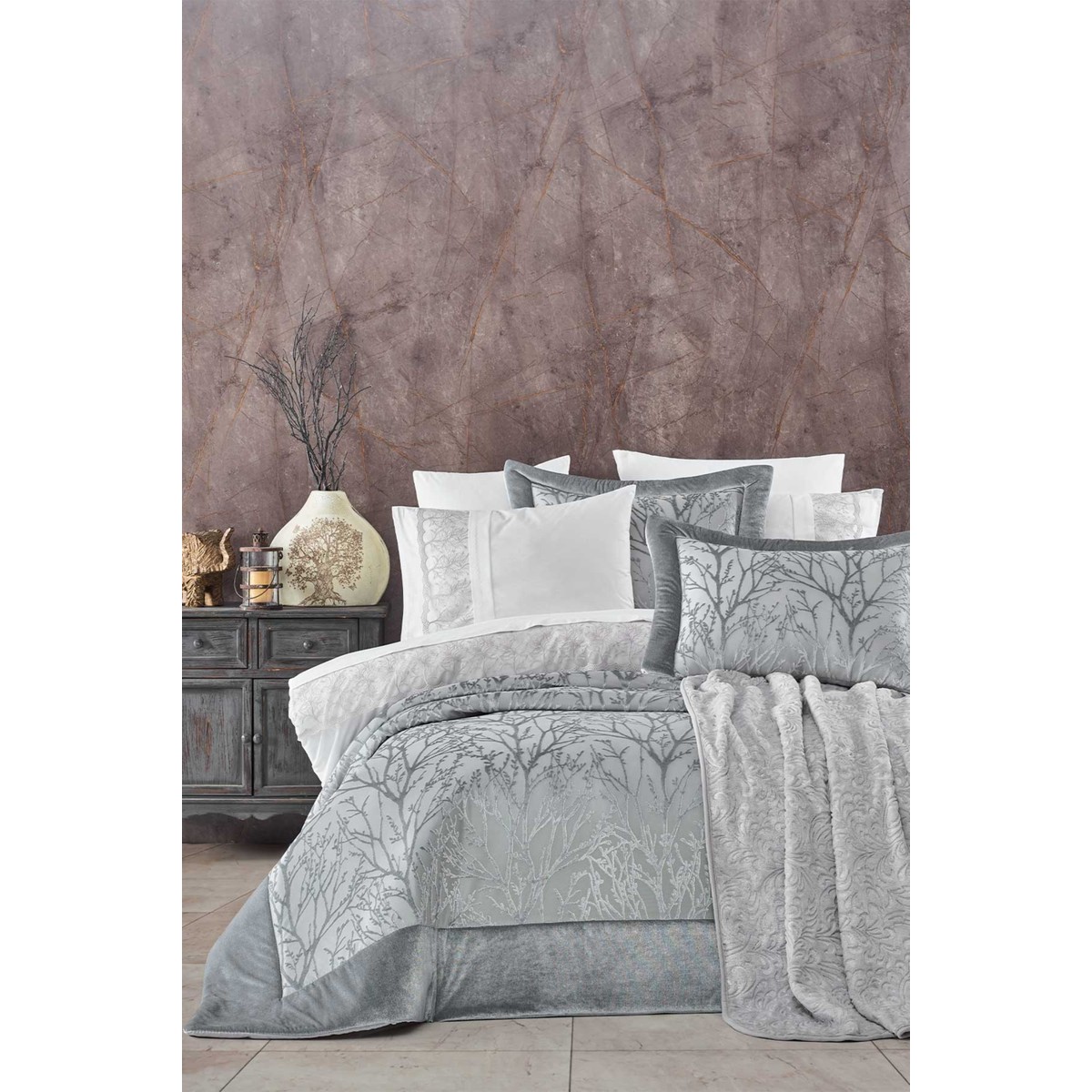 Elart Çeyiz Seti 53 Parça %100 Organik Pamuk Bahar Modeli 270×260 cm Gümüş Renk Desenli