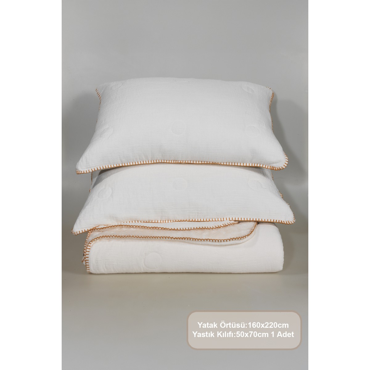 Set İçeriği: Yatak Örtüsü (160×220 cm) 1 Adet Yastık Kılıfı (50×70 cm) 1 Adet Kumaş Özellikleri: %100 Polyester Naturel görünümü ve sıcak tutan yapısıyla dört mevsim tüm ihtiyaçlarınızı karşılayacak özel bir ürün. Doğadan ilham alınan naturel renk tonları ve dokusuyla huzuru ve sadeliği sunuyor. Makinede 30 derecede yıkanabilir ve ütü gerektirmeyen özelliği ile sizlerin yaşamınızı kolaylaştıracaktır. Soğuk havalarda comfort/battaniye seti, diğer mevsimlerde ise yatak örtüsü olarak kullanabilirsiniz. Yumuşak yapısıyla konforu, modern tasarımıyla estetiği bir arada bulacaksınız.