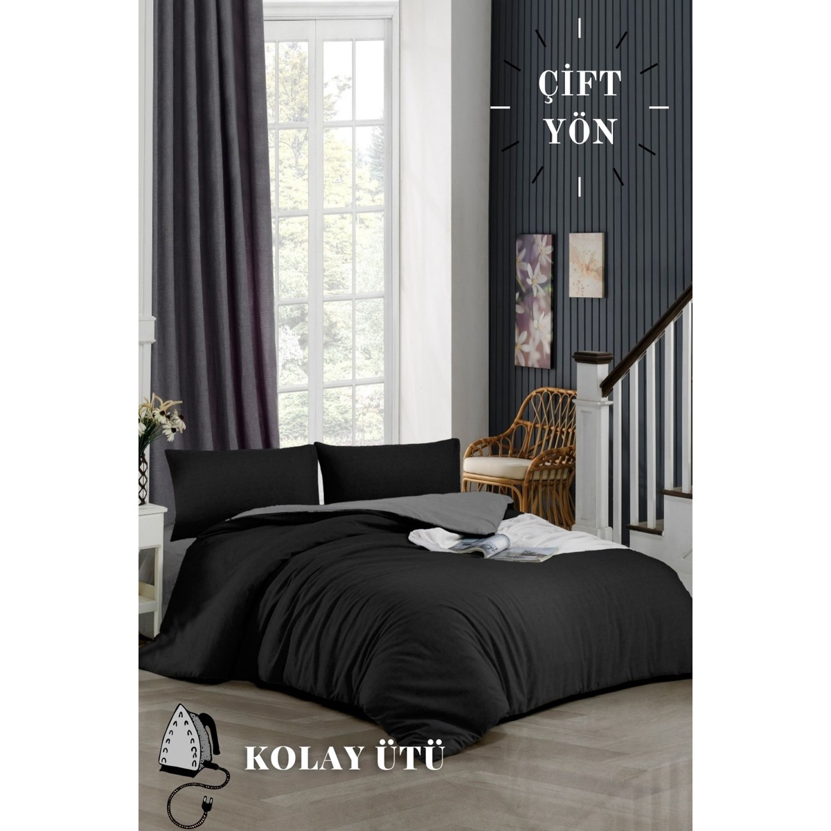 Ely Parker Kolay Ütü 90X190 Tek Kişilik Nevresim Takımı (Gri Lastikli Çarşaf+Yorgan Kılıfı+Yastık Kılıfı)