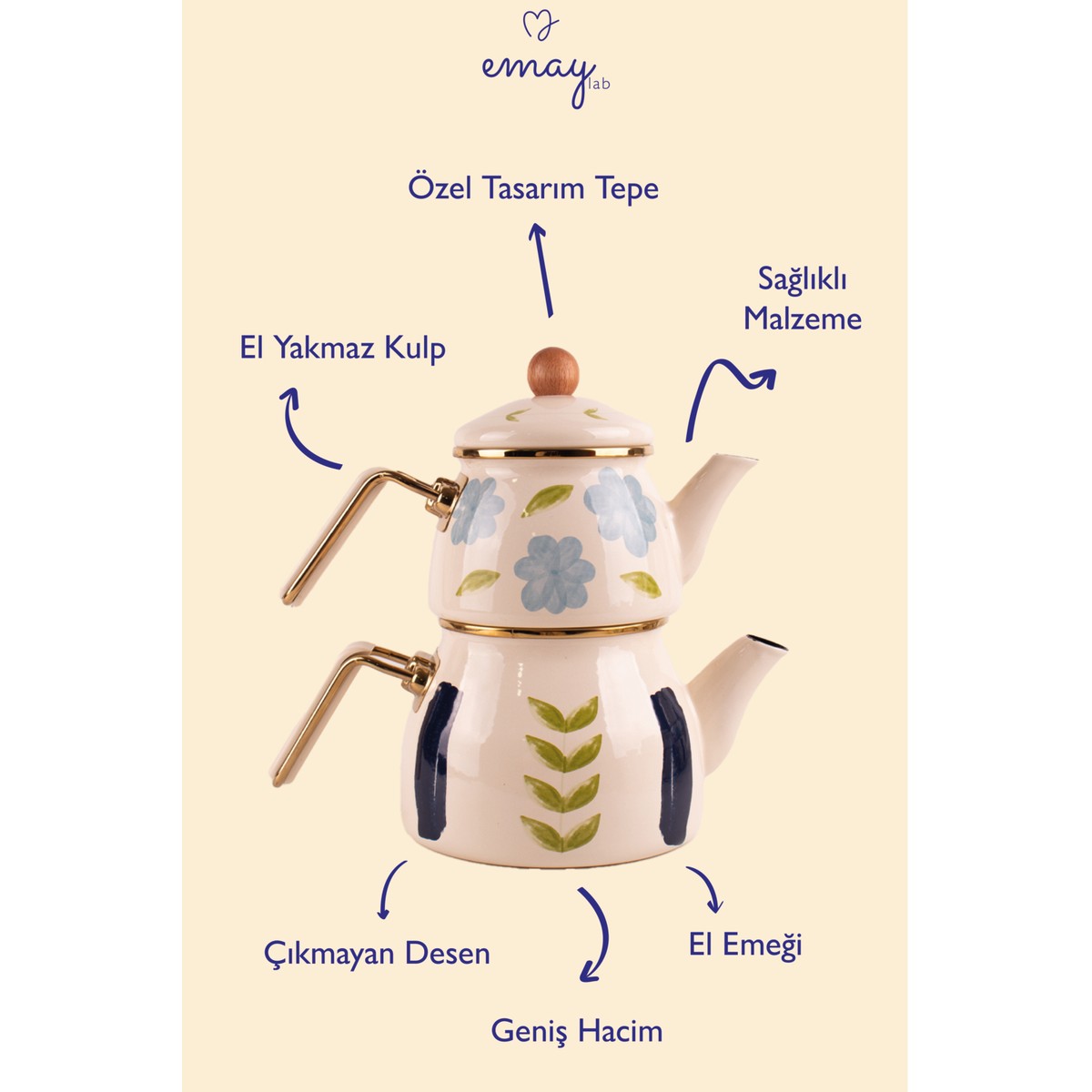 Emaylab Bloom Emaye Çaydanlık El Yakmaz Kulplu