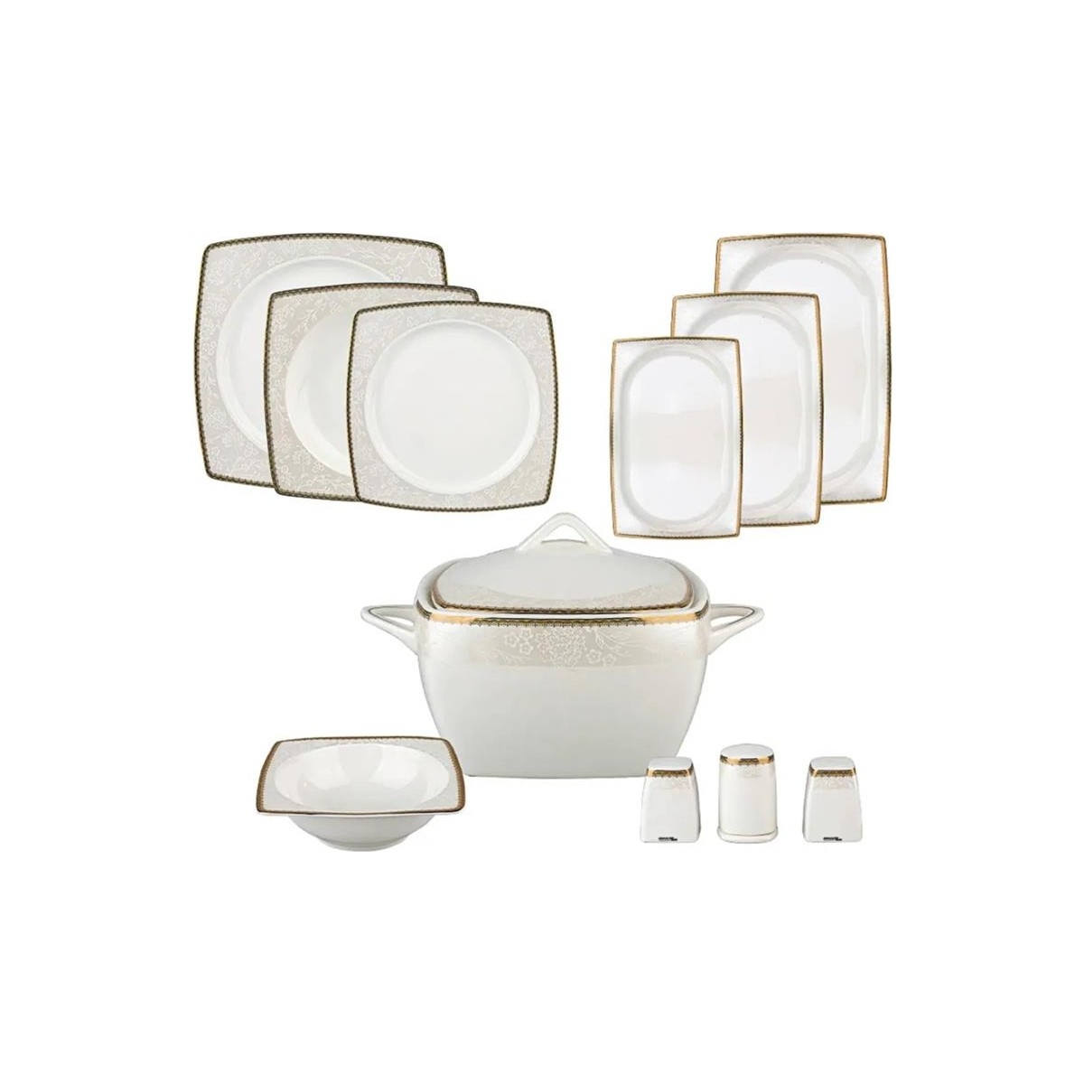 Kütahya Porselen Luz Form Platin File 52 Parça 12 Kişilik Bone Porselen Yemek Takımı