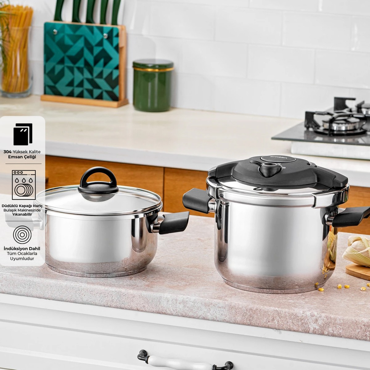 Emsan Arya 4 + 6 Lt Düdüklü Çelik Tencere