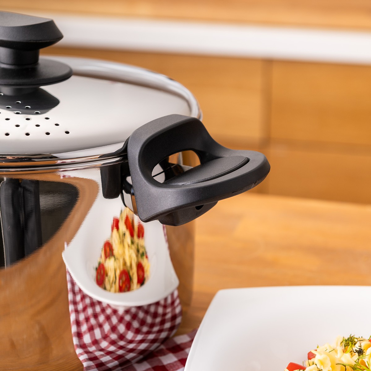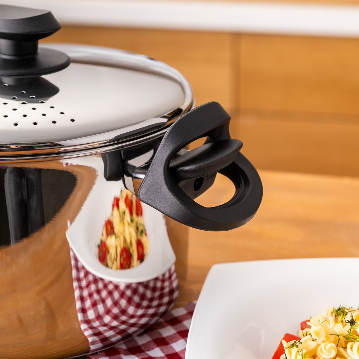 - Kilitli ve süzgeçli kapağı sayesinde süzme işlemini tek hamlede gerçekleştirir.