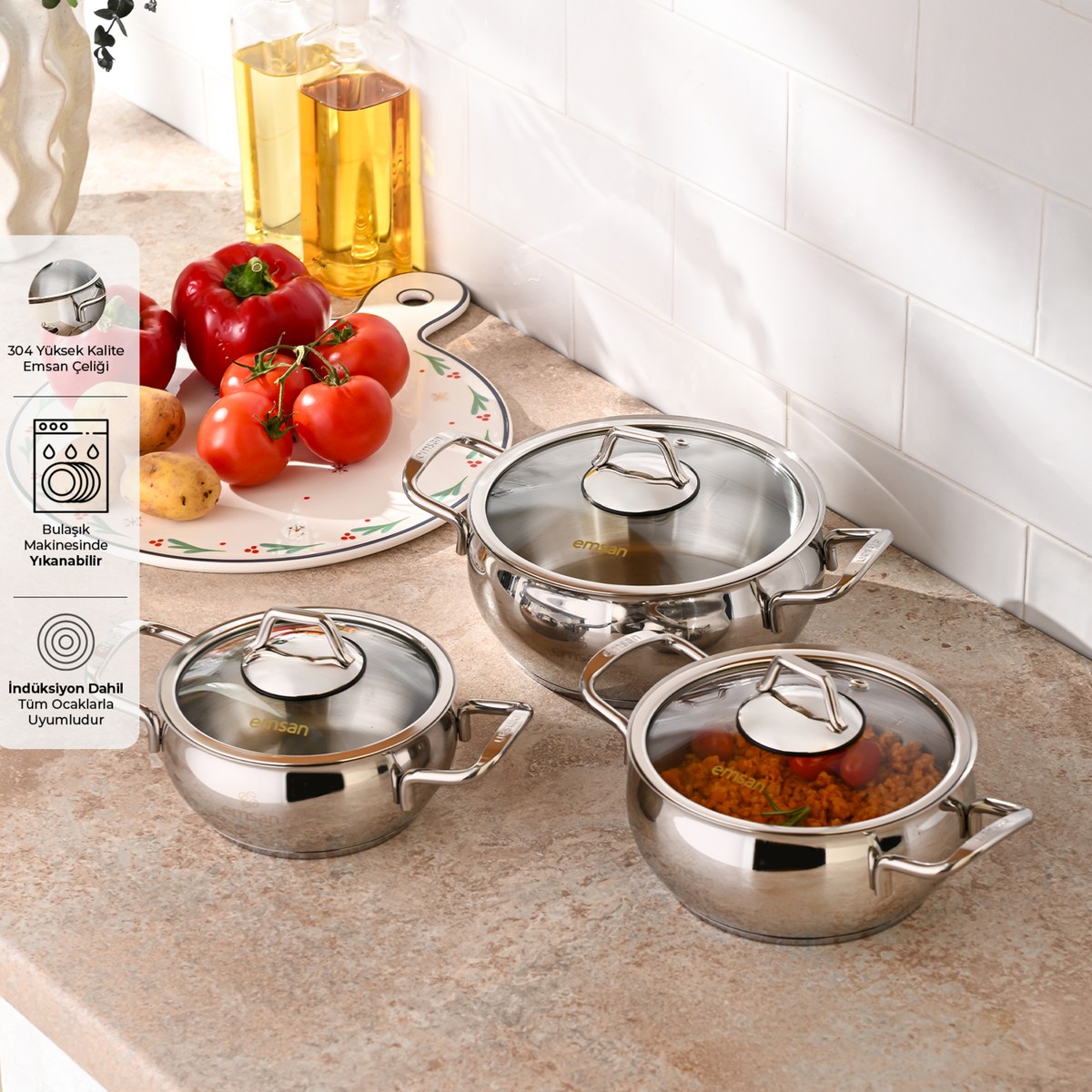 Emsan Cemre 6 Parça Midi Paslanmaz Çelik Tencere Seti—-O bir klasik…—-