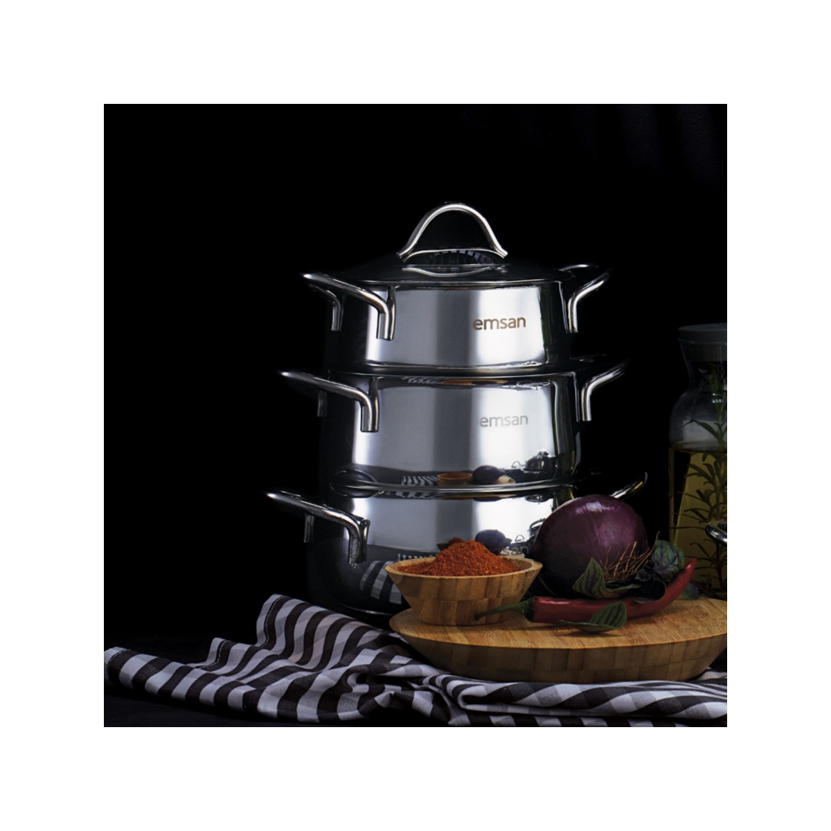 —-Yiyeceklerin vitamin ve mineral değerlerini kaybetmeden pişmelerini sağlayan Emsan Cemre 6 Parça Paslanmaz Çelik Midi Set. Midi set ile uzun yıllar boyunca lezzetli yemekler hazırlayın.—-Set İçeriği—-