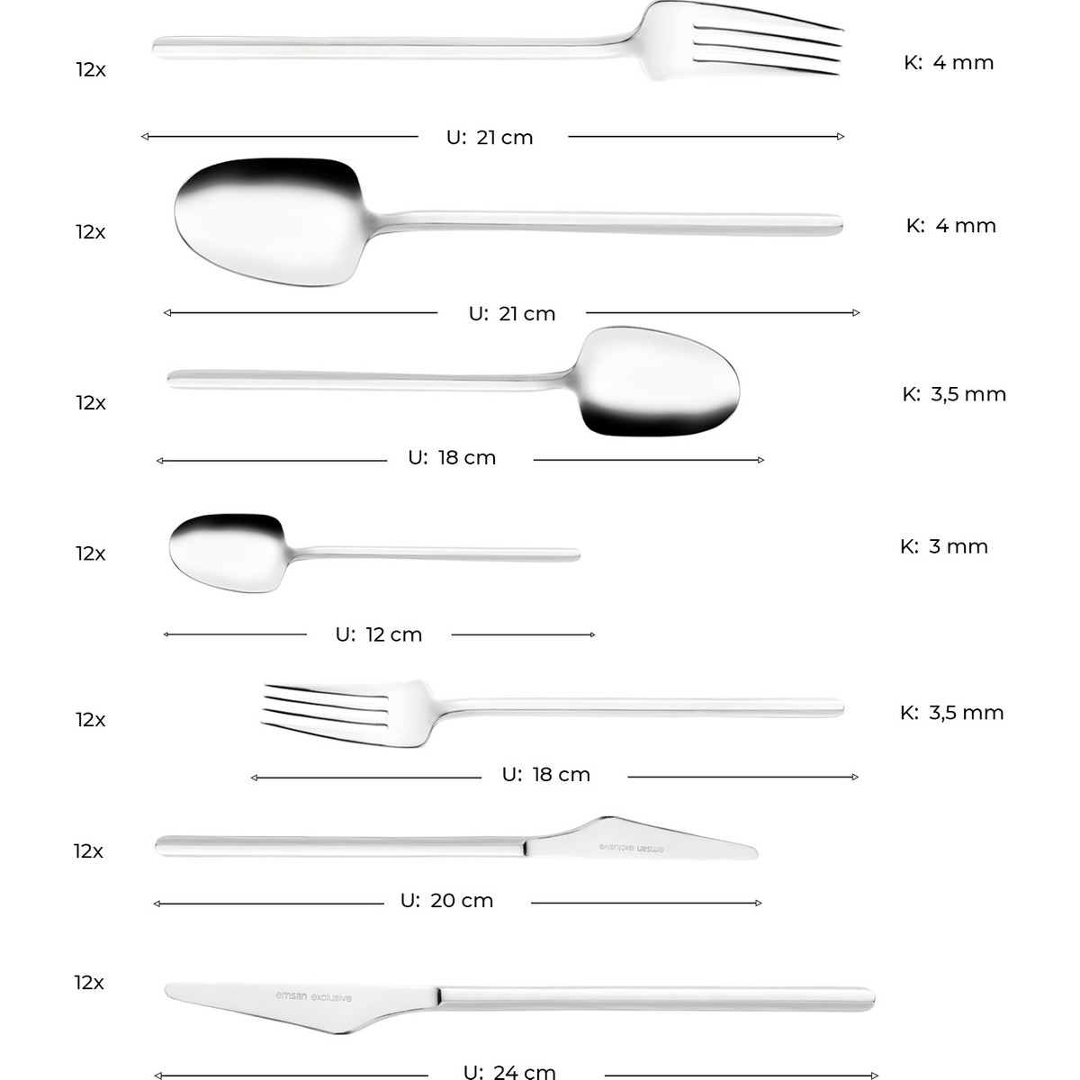 - 12 Adet Yemek Kaşığı