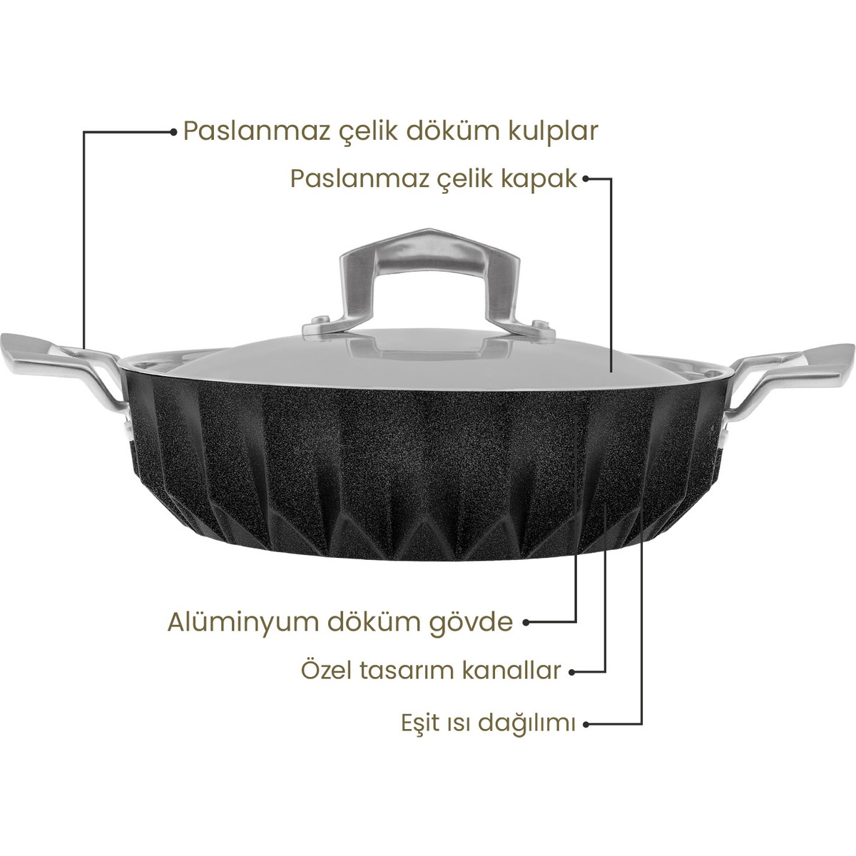 Emsan Diagon Döküm Granit 26 cm Karnıyarık Tencere Siyah
