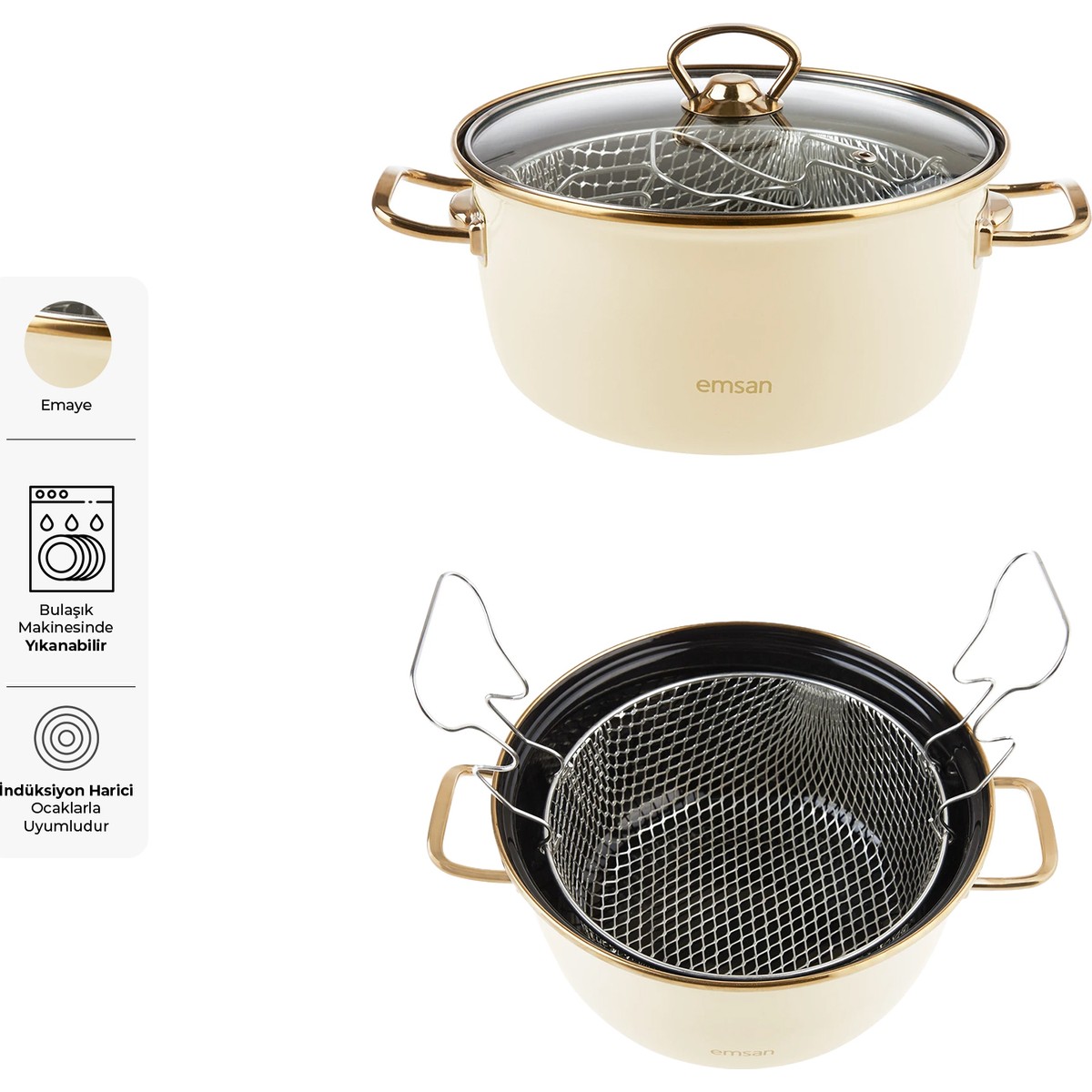 Emsan Nostalji Emaye Bej Kızartma Tenceresi