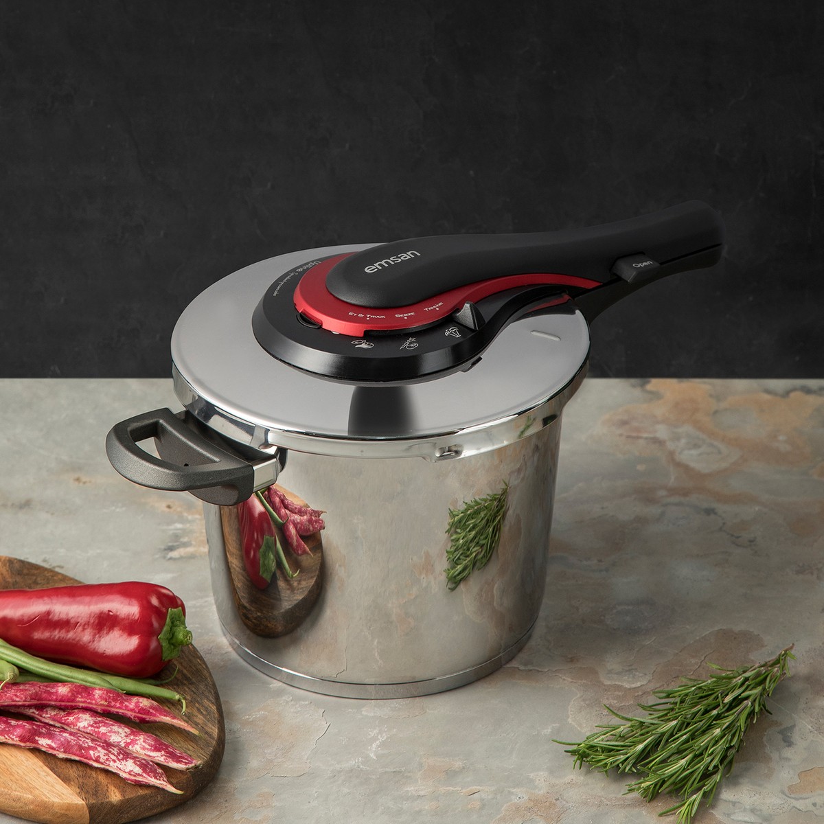 Emsan Up-line Kırmızı 4+6 Lt Klasik Paslanmaz Çelik Düdüklü Tencere Seti