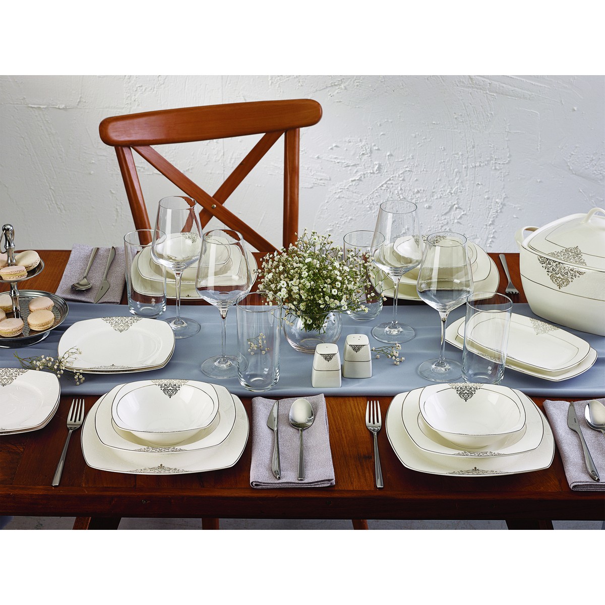 Emsan Yasemin 60 Parça 12 Kişilik Porselen Yemek Takımı Platin