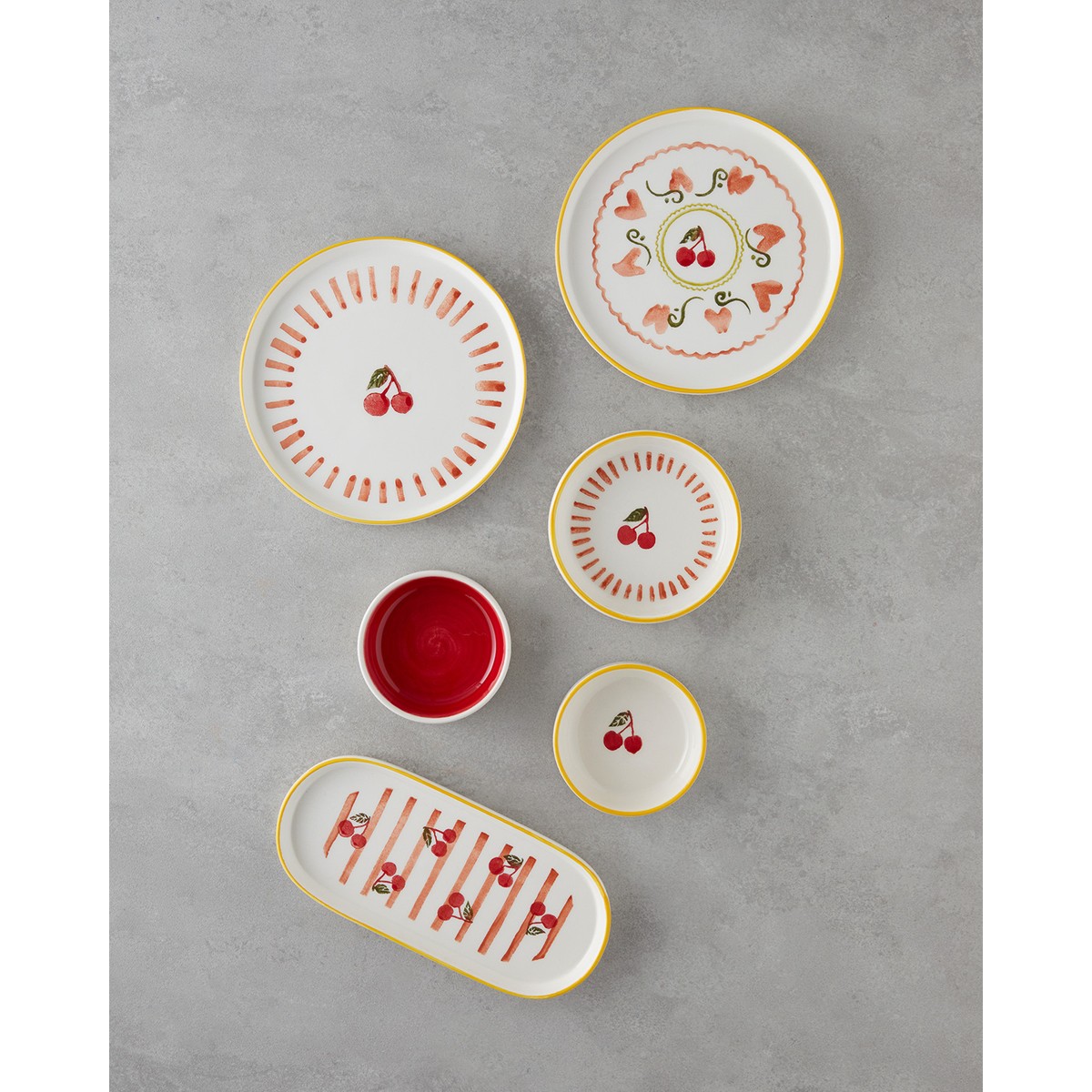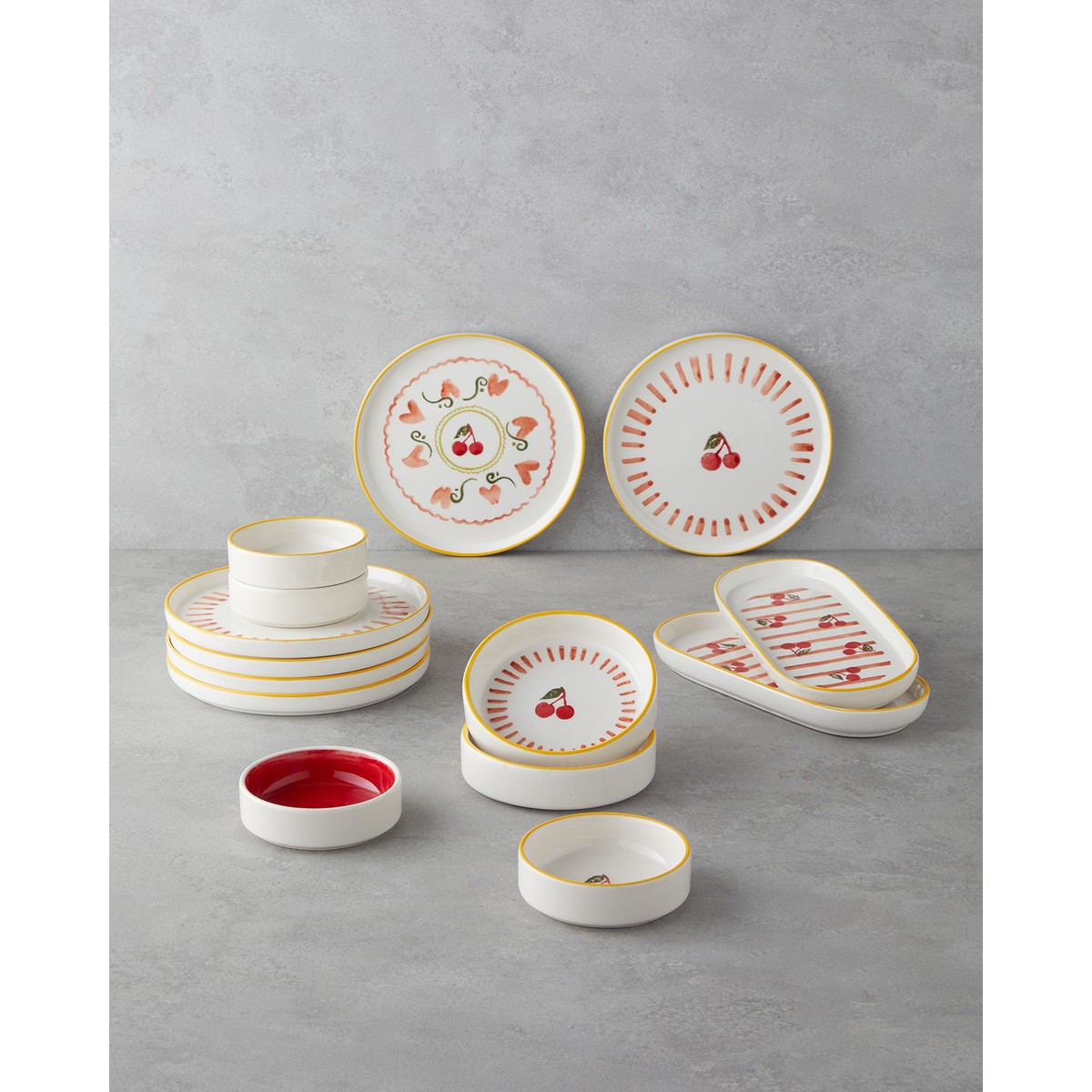 Cherry Seramik Kahvaltı Takımı 14 Parça 6 Kişilik Kırmızı-Sarı
