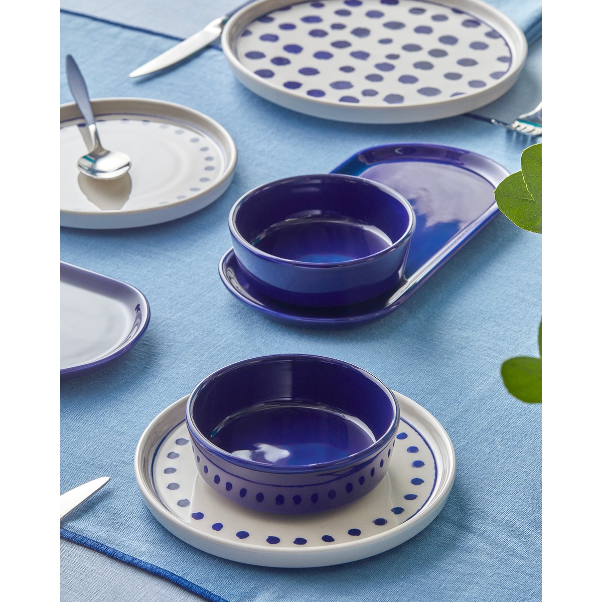 Göz alıcı lacivert rengi, sofranıza derinlik ve sofistike bir hava katarken, yuvarlak tabak şekli ise klasik bir zarafet sunuyor. Altı kişilik kapasitesiyle, ailenizle veya misafirlerinizle keyifli kahvaltılar yapmanın tadını çıkarabilirsiniz.