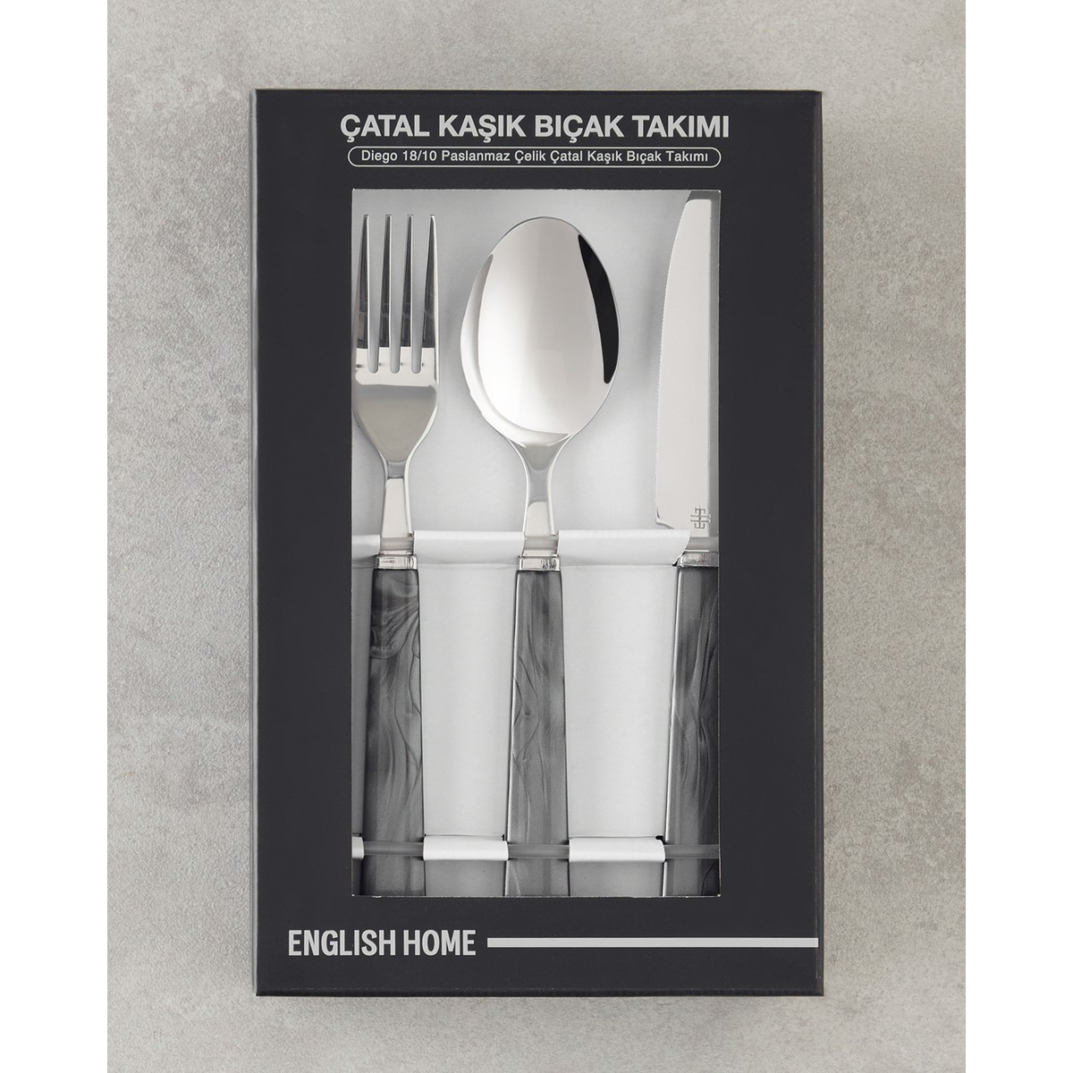 English Home Diego Paslanmaz Çelik Çatal Kaşık Bıçak Takımı 18 Parça 6 Kişilik Siyah