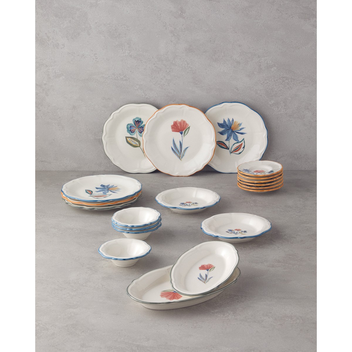 Renkli ve çiçek desenli tasarımı, her sofraya canlılık katarken, porselenin pürüzsüz dokusu da dokunma hissinizi zenginleştiriyor. Sabah kahvaltılarınızı daha özel ve keyifli hale getirmek için bu seti tercih edebilirsiniz. Hayatınıza renk katmak ve sofralarınıza zarafet getirmek için mükemmel bir seçim.
