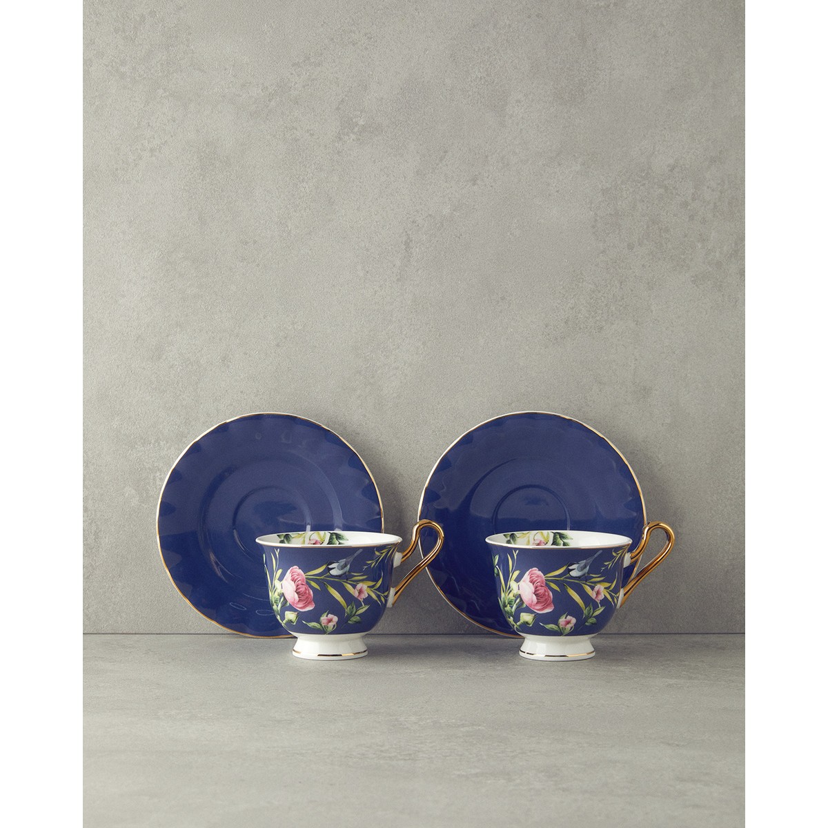 English Home Vanilla New Bone China 4 Parça 2 Kişilik Çay Fincanı Takımı Lacivert