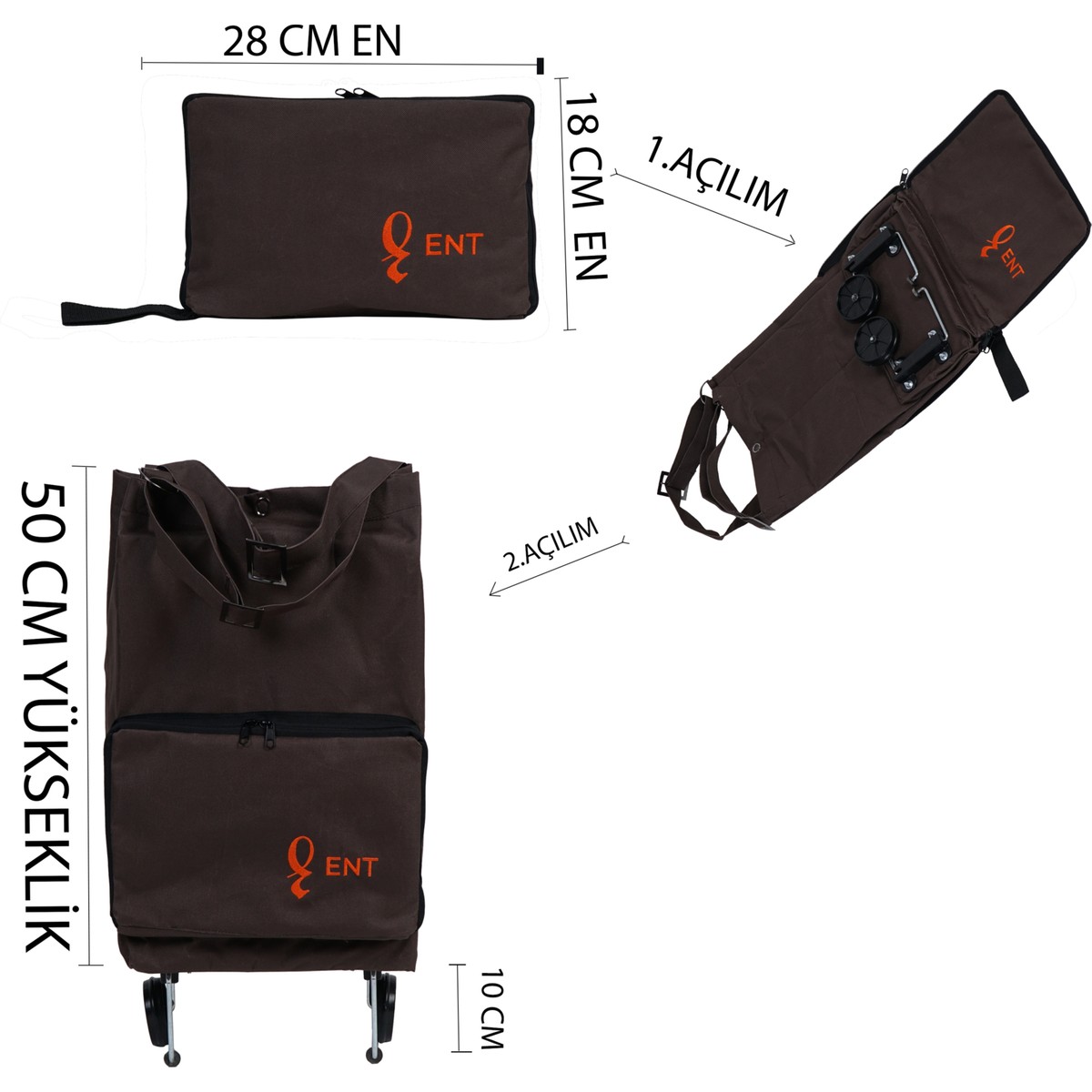 Ent Çanta Çiğdem Model Su Geçirmez, Ağır Yüklerde Yardımcı, 2 Tekerli ve Katlanabilir Alışveriş ve Seyahat Çantası 600 Denye-Kahve