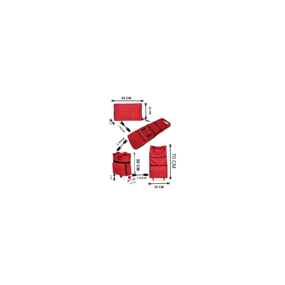 Ent Çanta ENT CANTA Nergis Model Su Geçirmez, 2 Tekerli ve Katlanabilir Alışveriş ve Seyahat Çantası – Kırmızı