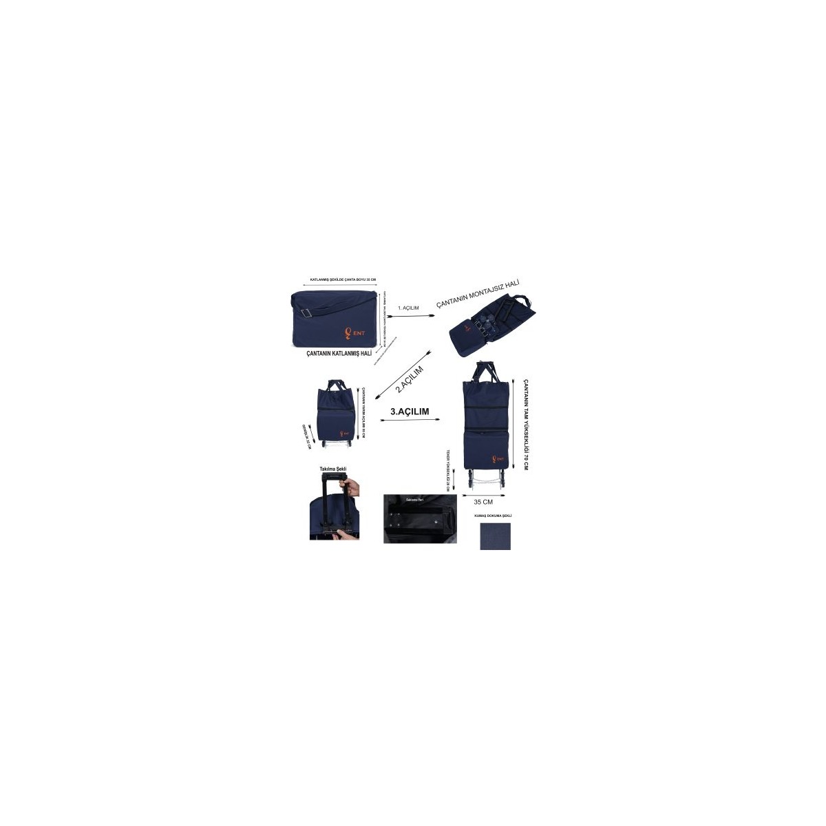 Ent Çanta ENT CANTA VADİ Model Sessiz 6 Tekerli, Çok Fonksiyonlu, Merdiven Çıkabilen Katlanabilir Teleskobik Kollu Seyahat ve Alışveriş Çantası-Lacivert