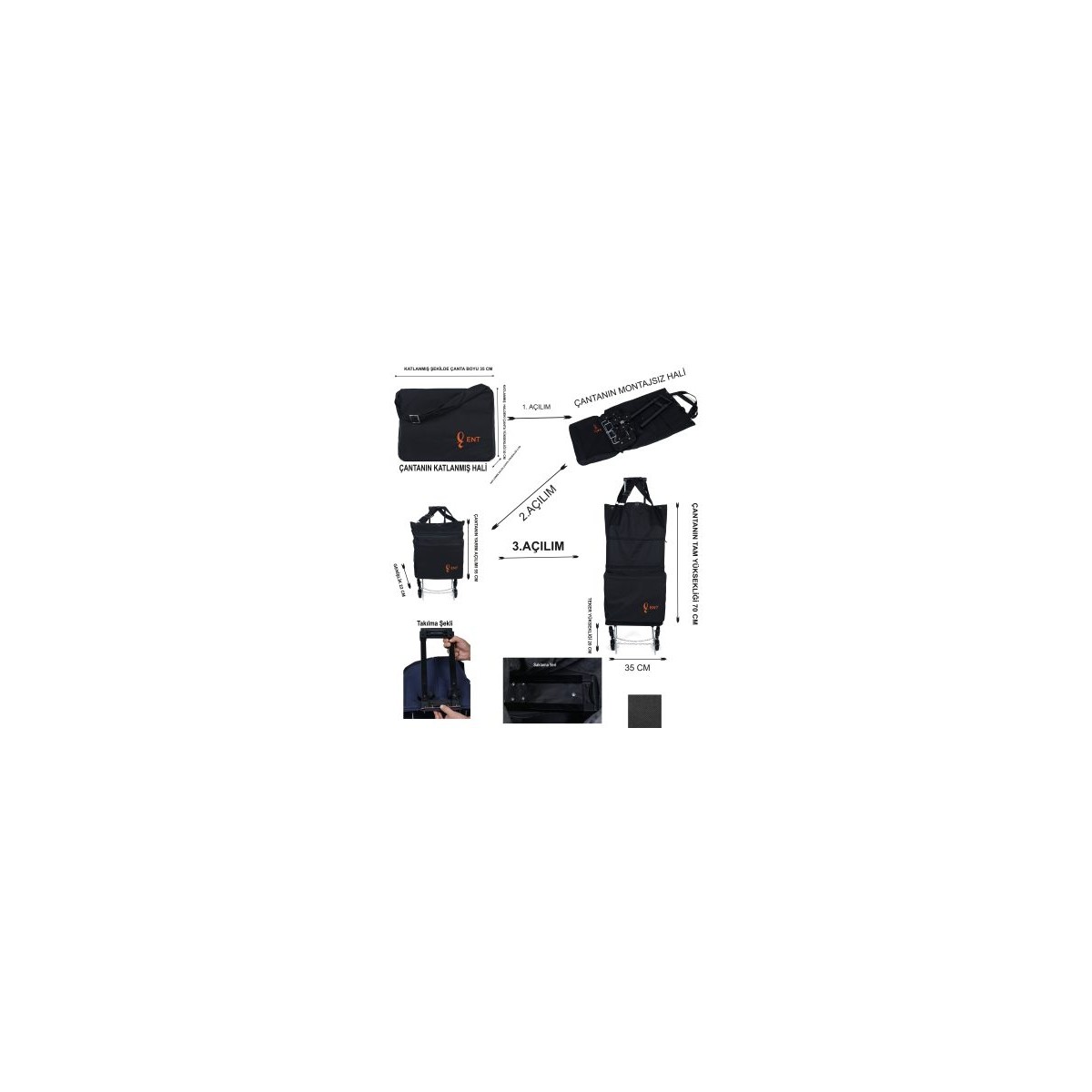 ENT CANTA VADİ Model Sessiz 6 Tekerli, Çok Fonksiyonlu, Merdiven Çıkabilen Katlanabilir Teleskobik Kollu Seyahat ve Alışveriş Çantası-Siyah