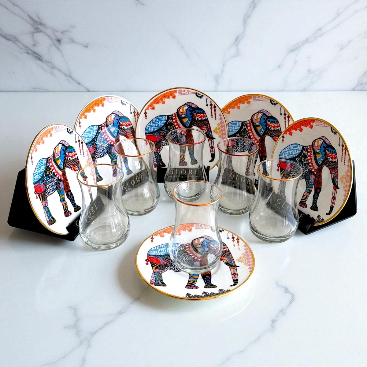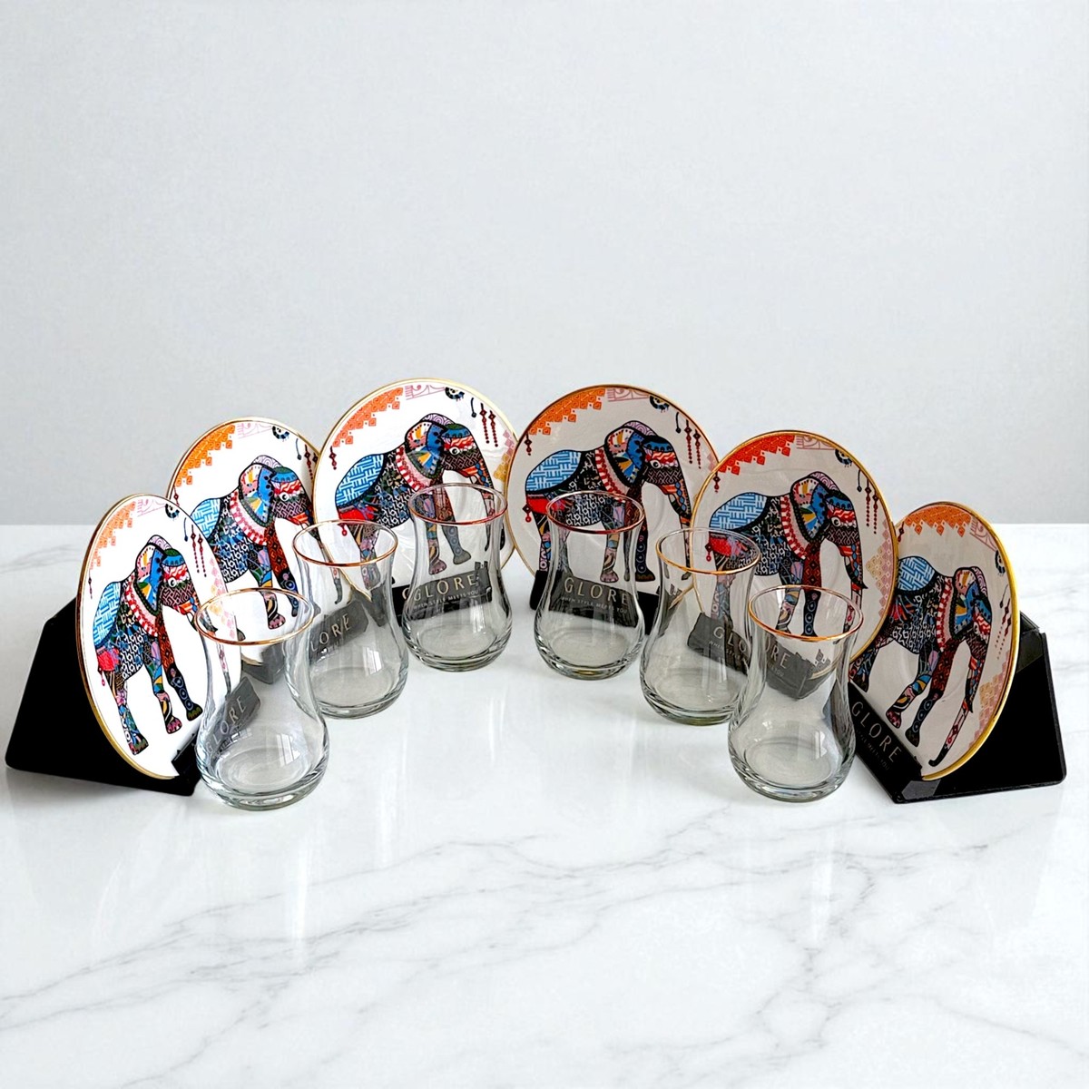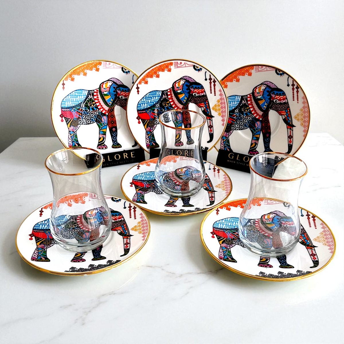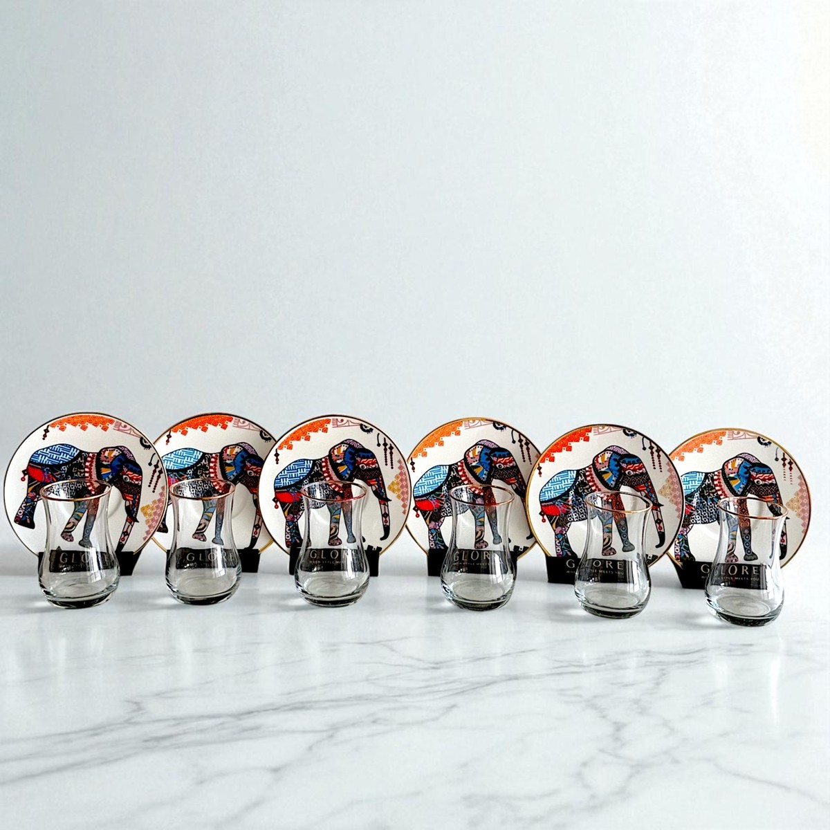 Etnik Fil Desenli 6’lı Porselen Tabaklı Çay Bardağı Takımı – Sudedi Home