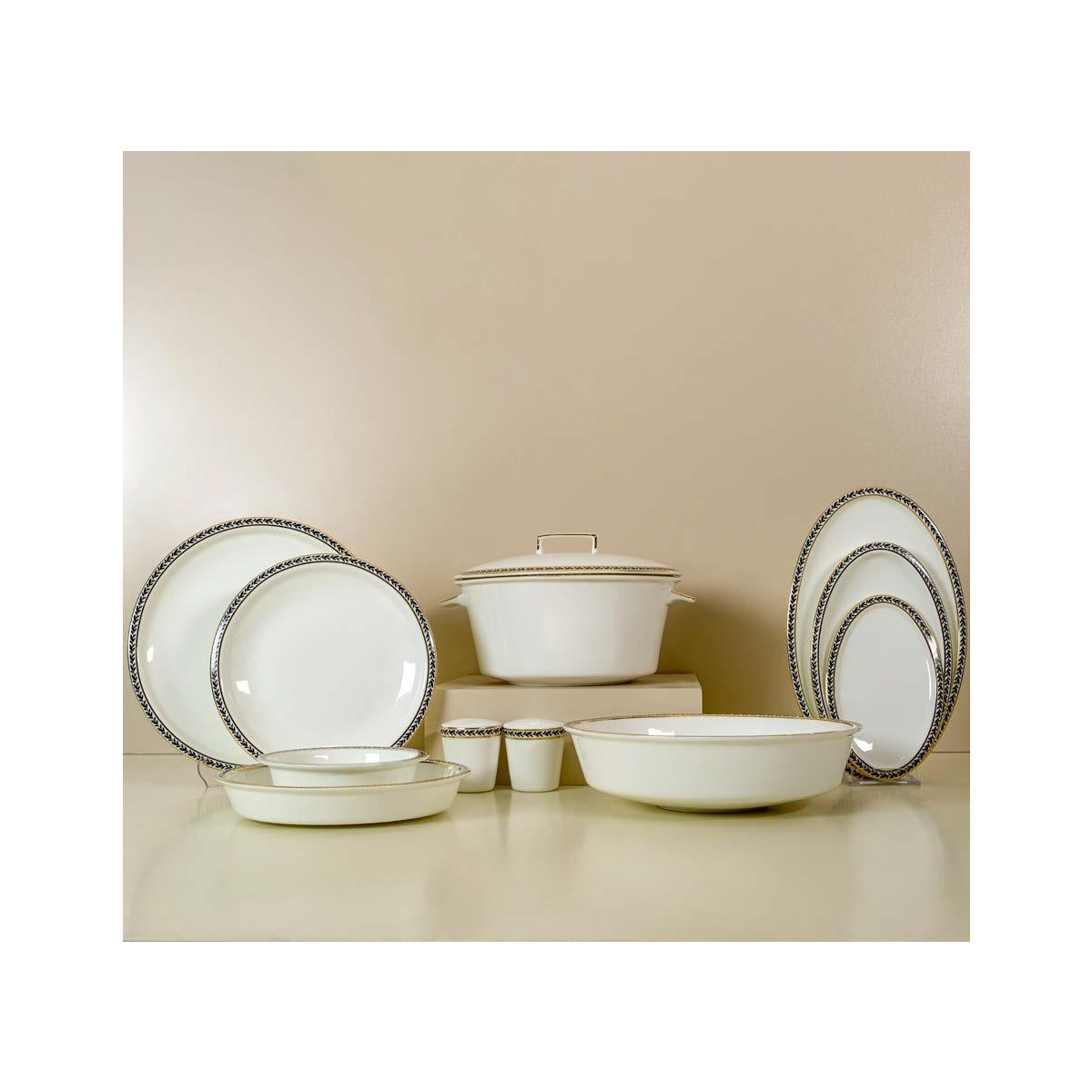 Evaliza Alaia Black Gold Leaves 2mm Altın 12 Kişilik 60 Parça Porselen Yemek Takımı
