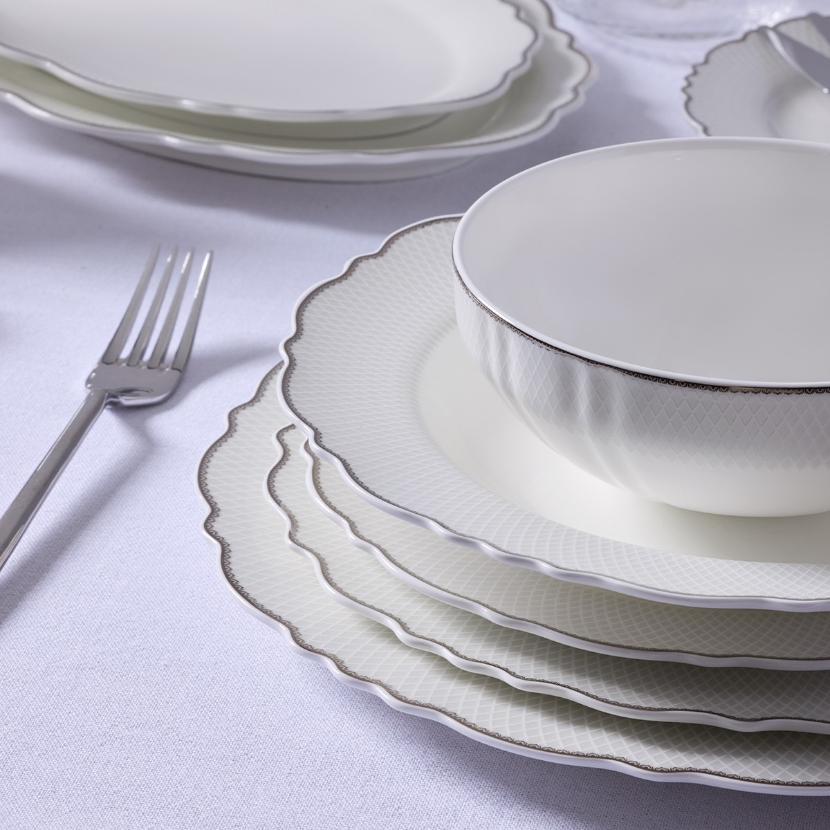 Evaliza Destiny Platin 85 Parça 12 Kişilik Yemek Takımı