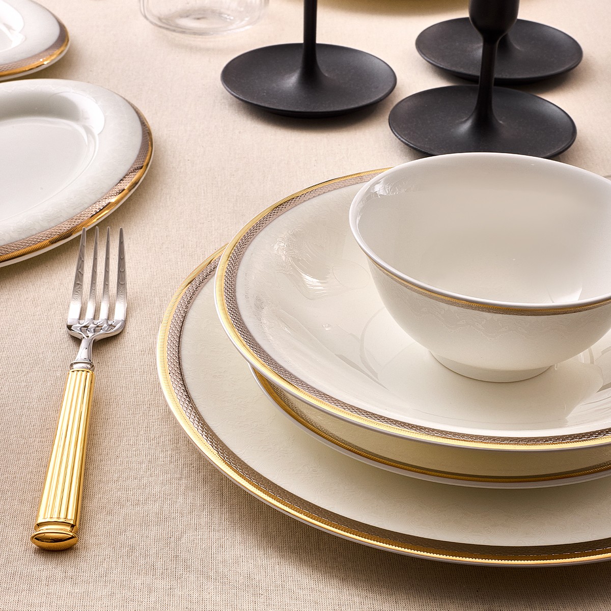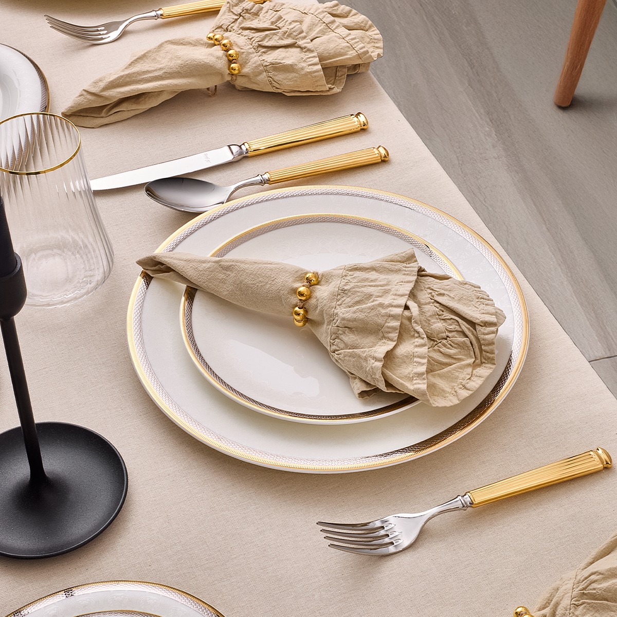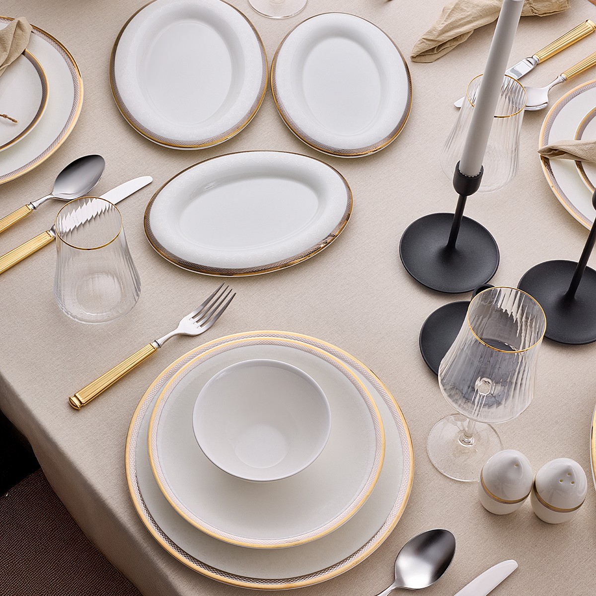 Altın detaylarıyla zenginleştirilmiş tasarımı, misafirlerinize şık ve gösterişli bir sofra deneyimi sunar.