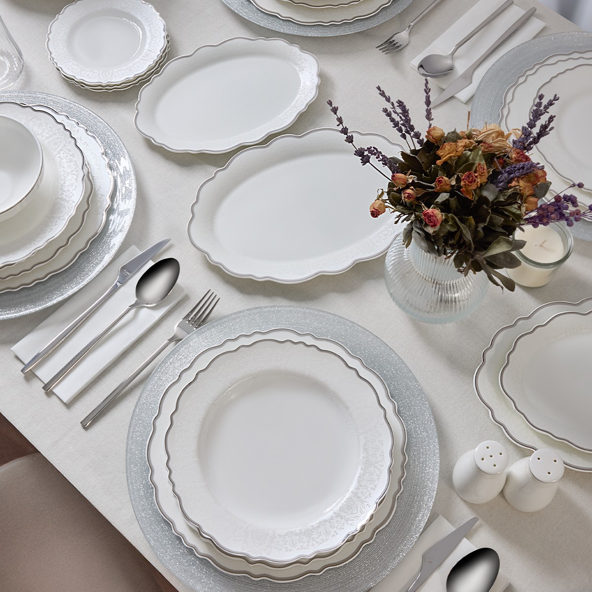 Platin Detaylar: Sofranızı zenginleştirir, lüks bir görünüm sağlar.