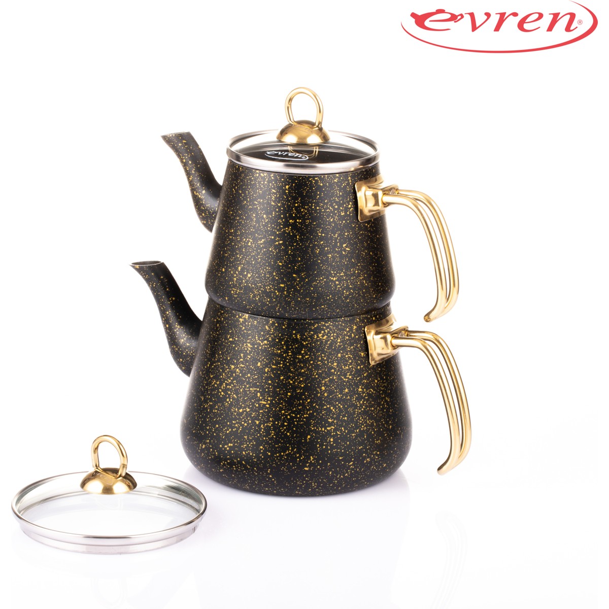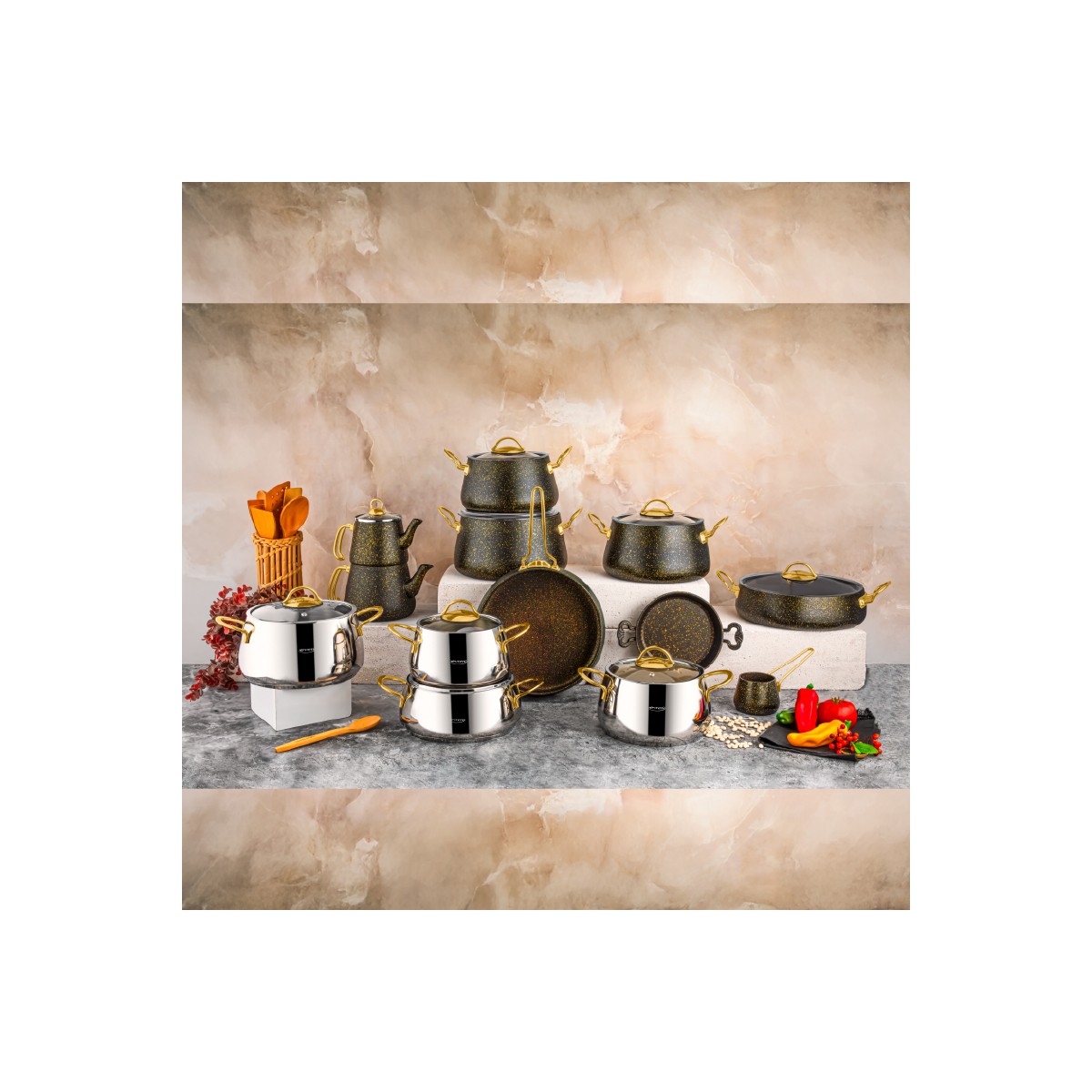 Evren 8 parça bakraç çelik tencere seti + evren 9 parça gold stone bakraç tencere seti + evren gold stone bakraç çaydanlık takımı orta boy (1+2 lt) + evren 18 cm gold stone döküm sahan Evren 8 parça bucket çelik tencere seti (silver) Evren 8 parça buket tencere seti, hem lezzetli yemekler hazırlamanızda hem de mutfakta keyifli vakit geçirmenizde en büyük yardımcınız olacak. Ürün özellikleri: Materyal: 304 kalite 18/10 cr-Ni paslanmaz çelikten uluslararası standartlara uygun olarak üretilmiştir. Kalınlık: Gövde kalınlığı 0,8 mm’dir. Kapak: Ürün cam kapaklıdır. Kulp: Üründe gold renkli paslanmaz çelik kulp kullanılmıştır. Kalite belgeleri: Ürünlerimiz tse, ıso 9001, ıso 22000 ve gost-R belgelerine sahiptir. Garanti: Yerli üretim / 2 yıl garanti Kullanım kılavuzu Ürünü ilk kullanımdan önce sıcak su, bulaşık deterjanı ve yumuşak süngerle yıkayınız. Kimyasal çözücü kullanmayınız. Üründe yemek pişirirken yağ yakmamaya özen gösteriniz. Içi boşken ateşte bırakmayınız. Uzun süreli pişirmelerde ürünün kulplarına ısı aktarımı olacaktır. Bu tür durumlarda kulpları bezle tutmanızı öneririz. Ürünün ilk günkü özelliklerini koruması için bulaşık makinesi yerine elle yıkamanızı tavsiye ederiz. Her yıkamadan sonra yumuşak bir bezle kurulayınız. Zaman içinde çelik üzerinde lekeler oluşabilir. Su damlalarının oluşturduğu lekeleri çıkarmak için üzerine limon suyu veya sirke damlatılmış bir sünger ile silmek yeterli olacaktır. Set içeriği: 16 cm (3,6 lt) derin tencere + cam kapak 18 cm (4,5 lt) derin tencere + cam kapak 20 cm (5,5 lt) derin tencere + cam kapak 20 cm (3,4 lt) basık tencere + cam kapak Ürün ağırlığı: 8,5 kg (ortalama) Evren 9 parça gold stone bakraç set Evren 9 parça gold stone pyramid set, hem lezzetli yemekler hazırlamanızda hem de mutfakta keyifli vakit geçirmenizde en büyük yardımcınız olacak. Ürün özellikleri: Alüminyum gövde, non-Stick (weilburger) kaplama: Ürünün gövde yapısı etial-5 alüminyum olup, iç ve dış kaplaması weilburger firmasının ürettiği üstün kaliteli non-Stick’dir. Yapışmaz yüzey: Isıya ve lekelere karşı üstün pigmentlerden yapılmış malzeme ile kaplanmıştır. Kolay temizlik: Düzgün ve yapışmaz yüzeyi sayesinde hem yemeklerinizin yapışmadan pişmesini sağlar hem de kolay temizlenir. Pfoa free: Ürün sağlığa zararlı pfoa, kurşun, kadmiyum içermez. Kapak: Ürün cam kapaklıdır. Kulp: Üründe gold renkli paslanmaz çelik kulp kullanılmıştır. Kalite belgeleri: Ürünlerimiz tse, ıso 9001, ıso 22000 ve gost-R belgelerine sahiptir. Garanti: Yerli üretim / 2 yıl garanti Kullanım kılavuzu Ürünü ilk kullanımdan önce sıcak su ve sıvı bulaşık deterjanıyla elde yıkayınız. Kimyasal çözücü kullanmayınız. Yemeklerinizi orta ateşte pişiriniz. Ürünün içi boşken ateşte bırakmayınız. Uzun süreli pişirmelerde ürünün kulplarına ısı aktarımı olacaktır. Bu tür durumlarda kulpları bezle tutmanızı öneririz. Uzun ömürlü kullanım için metal gereçler yerine silikon ya da ahşap gereçler tercih ediniz. Ürünün içerisinde bıçak vb. Kesici aletlerle kesim/doğrama yapmayınız. Ürünün ilk günkü özelliklerini koruması için bulaşık makinesi yerine elle yıkamanızı tavsiye ederiz. Elde yıkamalarda kesinlikle bulaşık teli ve sert deterjanlar kullanmayınız. Her yıkamadan sonra yumuşak bir bezle kurulayınız. Set içeriği: 18 cm (3,2 lt) derin tencere + cam kapak 20 cm (4,4 lt) derin tencere + cam kapak 22 cm (5,1 lt) derin tencere + cam kapak 26 cm (3,6 lt) basık tencere + cam kapak 26 cm (3,6 lt) tava Ürün ağırlığı: 9,5 kg (ortalama) Evren gold stone bakraç çaydanlık takımı orta boy (1+2 lt) Evren çaydanlık takımı, hem lezzetli çaylar hazırlamanızda hem de mutfakta keyifli vakit geçirmenizde en büyük yardımcınız olacak. Ürün özellikleri: Alüminyum gövde, non-Stick (weilburger) kaplama: Ürünün gövde yapısı etial-5 alüminyum olup, iç ve dış kaplaması weilburger firmasının ürettiği üstün kaliteli non-Stick’dir. Yapışmaz yüzey: Isıya ve lekelere karşı üstün pigmentlerden yapılmış malzeme ile kaplanmıştır. Kolay temizlik: Düzgün ve yapışmaz yüzeyi sayesinde kolay temizlenir. Pfoa free: Ürün sağlığa zararlı pfoa, kurşun, kadmiyum içermez. Kapak: Ürün cam kapaklıdır. Kulp: Üründe gold renkli paslanmaz çelik kulp kullanılmıştır. Kalite belgeleri: Ürünlerimiz tse, ıso 9001, ıso 22000 ve gost-R belgelerine sahiptir. Garanti: Yerli üretim / 2 yıl garanti Kullanım kılavuzu Ürünü ilk kullanımdan önce sıcak su ve sıvı bulaşık deterjanıyla elde yıkayınız. Kimyasal çözücü kullanmayınız. Ürünün içi boşken ateşte bırakmayınız. Uzun süreli pişirmelerde ürünün kulplarına ısı aktarımı olacaktır. Bu tür durumlarda kulpları bezle tutmanızı öneririz. Ürünün ilk günkü özelliklerini koruması için bulaşık makinesi yerine elle yıkamanızı tavsiye ederiz. Elde yıkamalarda kesinlikle bulaşık teli ve sert deterjanlar kullanmayınız. Her yıkamadan sonra yumuşak bir bezle kurulayınız. Set içeriği: 1 litre üst demlik + cam kapak 2 litre alt demlik (kapaksız) Evren 18 cm gold stone döküm sahan Evren döküm sahan, hem lezzetli yemekler hazırlamanızda hem de mutfakta keyifli vakit geçirmenizde en büyük yardımcınız olacak. Ürün özellikleri: Alüminyum gövde, non-Stick (weilburger) kaplama: Ürünün gövde yapısı etial-5 alüminyum olup, iç ve dış kaplaması weilburger firmasının ürettiği üstün kaliteli non-Stick’dir. Yapışmaz yüzey: Isıya ve lekelere karşı üstün pigmentlerden yapılmış malzeme ile kaplanmıştır. Kolay temizlik: Düzgün ve yapışmaz yüzeyi sayesinde hem yemeklerinizin yapışmadan pişmesini sağlar hem de kolay temizlenir