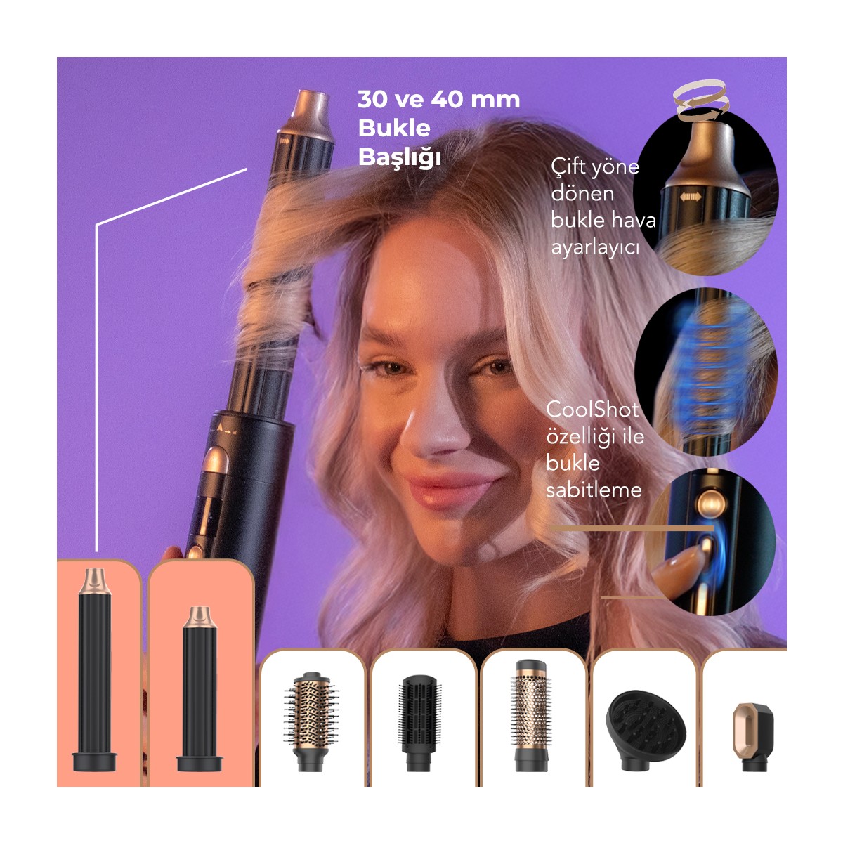 Fön başlığı, bukle aparatı ve düzleştirici başlık mükemmel çalışıyor. Hangi modeli yaparsam yapayım sonuç hep profesyonel gibi oluyor. Üstelik şekillendirme sonrası soğuk hava özelliği sayesinde saçlarım gün boyu bozulmadan kalıyor.