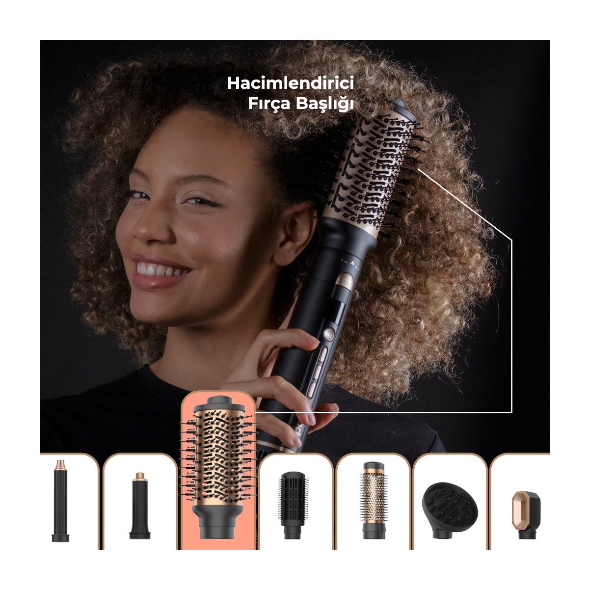 Fabcio Airset 7 Başlıklı Saç Kurutma, Düzleştirici, Bukle ve Şekillendirici Set (Siyah/gold)