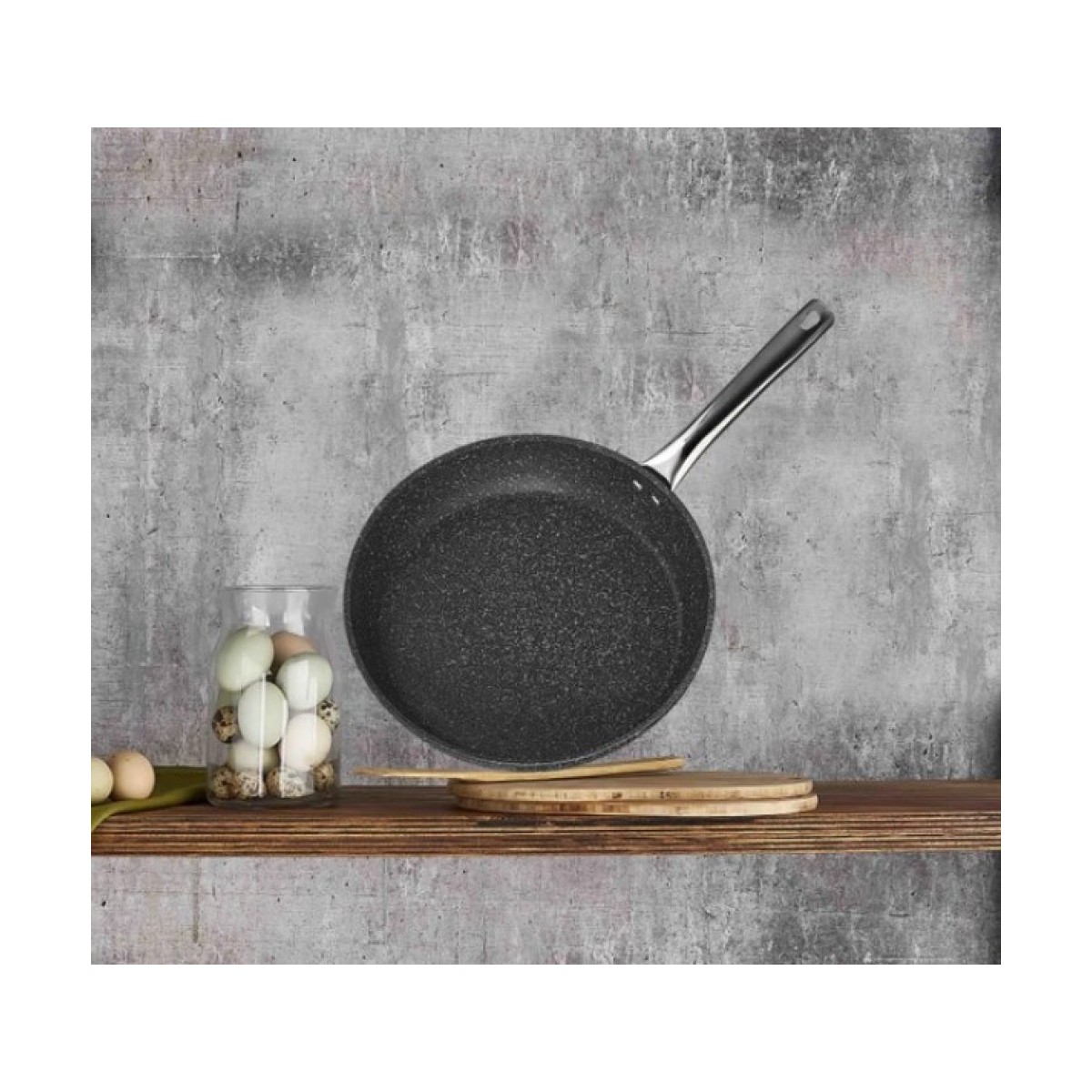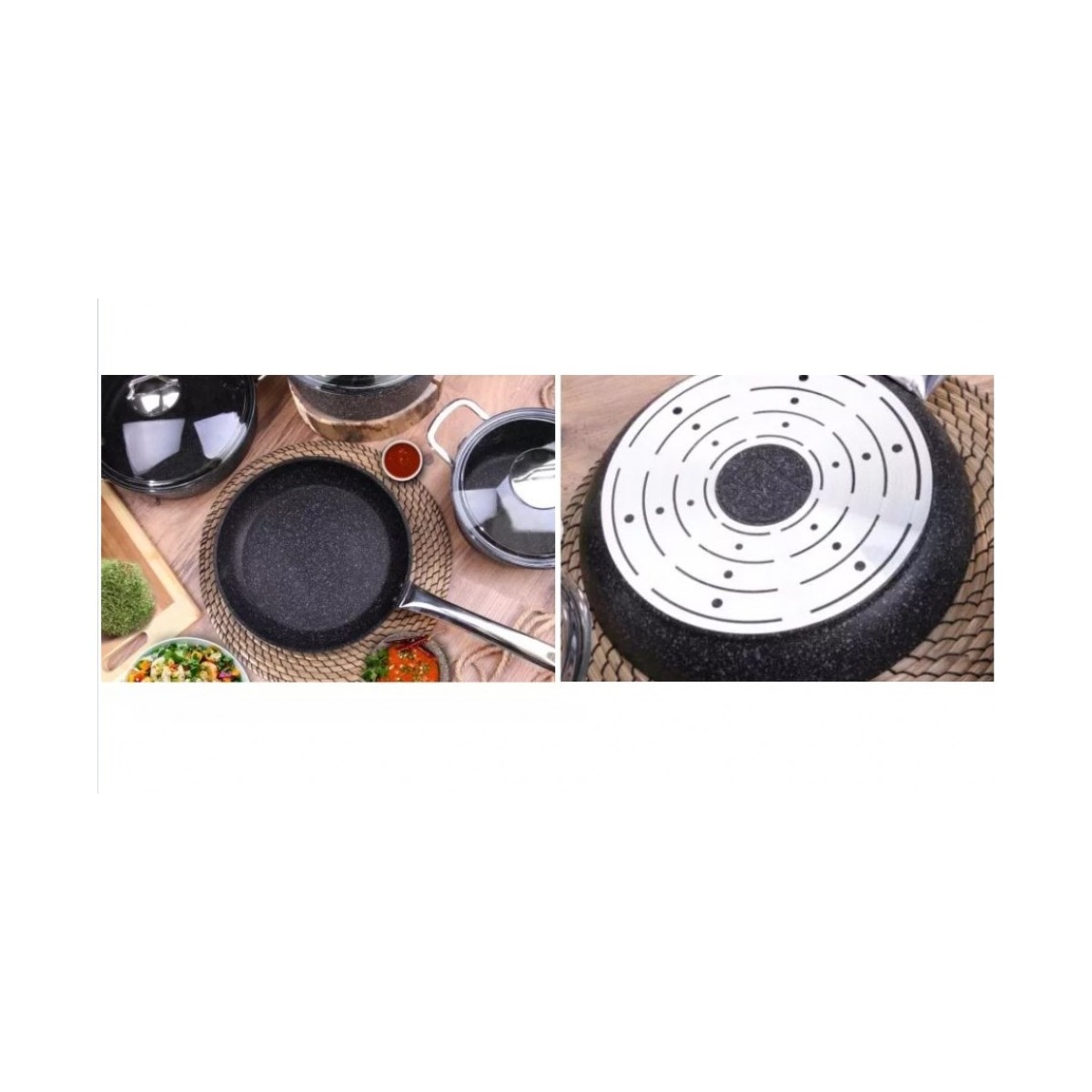 Granit yüzeyi sayesinde pişirdiklerinizi güvenli bir şekilde hazırlayabilirsiniz. Yanmaz özelliği sayesinde daha dayanıklıdır. Yapışmayan yüzeyi yemeklerinizi daha kolay pişirmenizi sağlar. Yüzeyi granit maddesi sayesinde çizilmeye karşı dayanıklıdır. Bulaşık makinasında yıkamaya uygundur.
