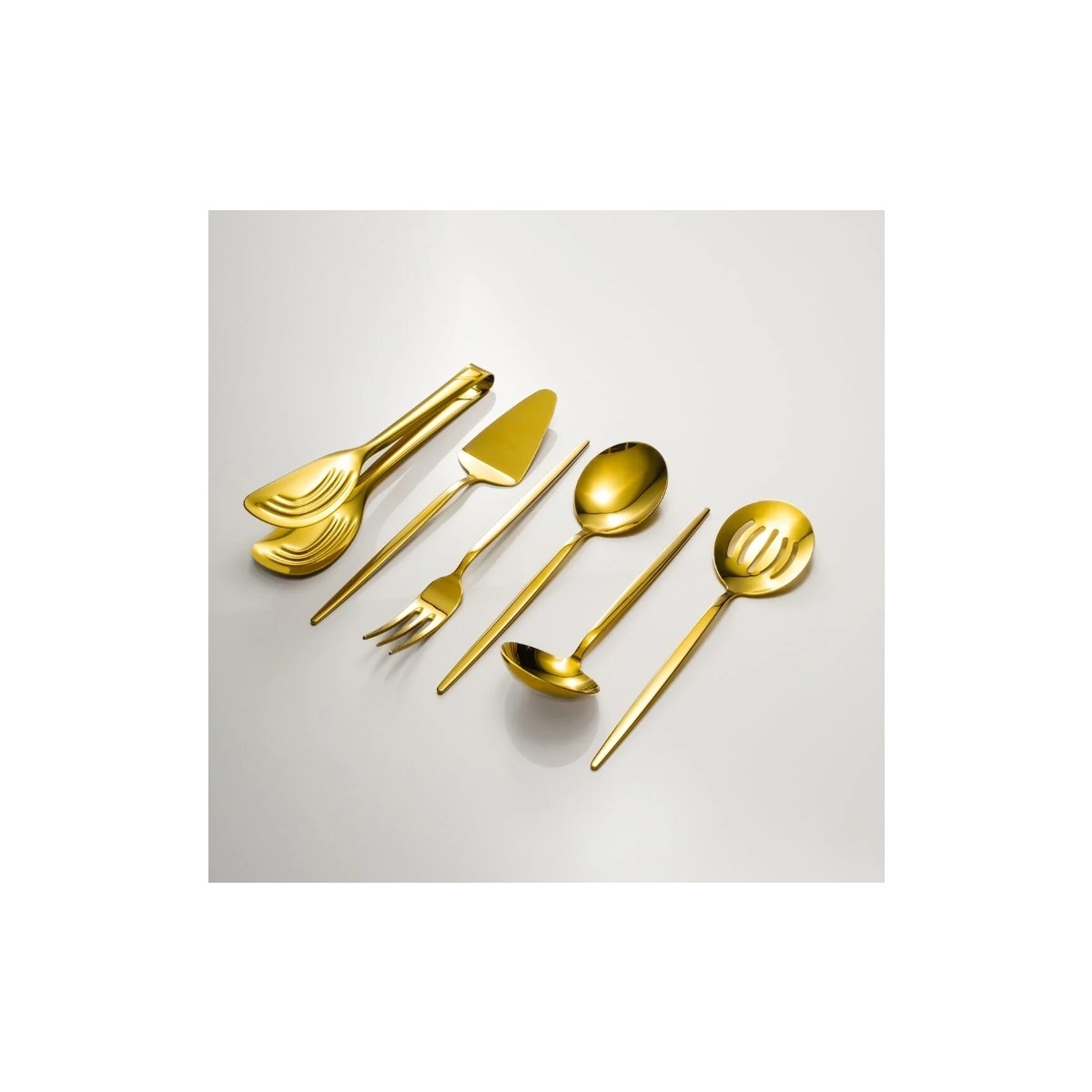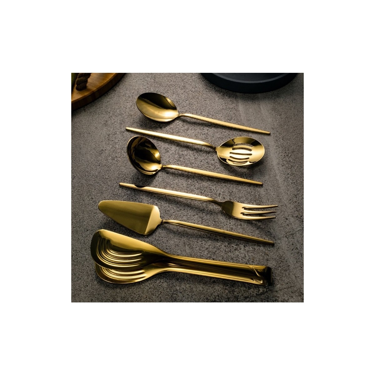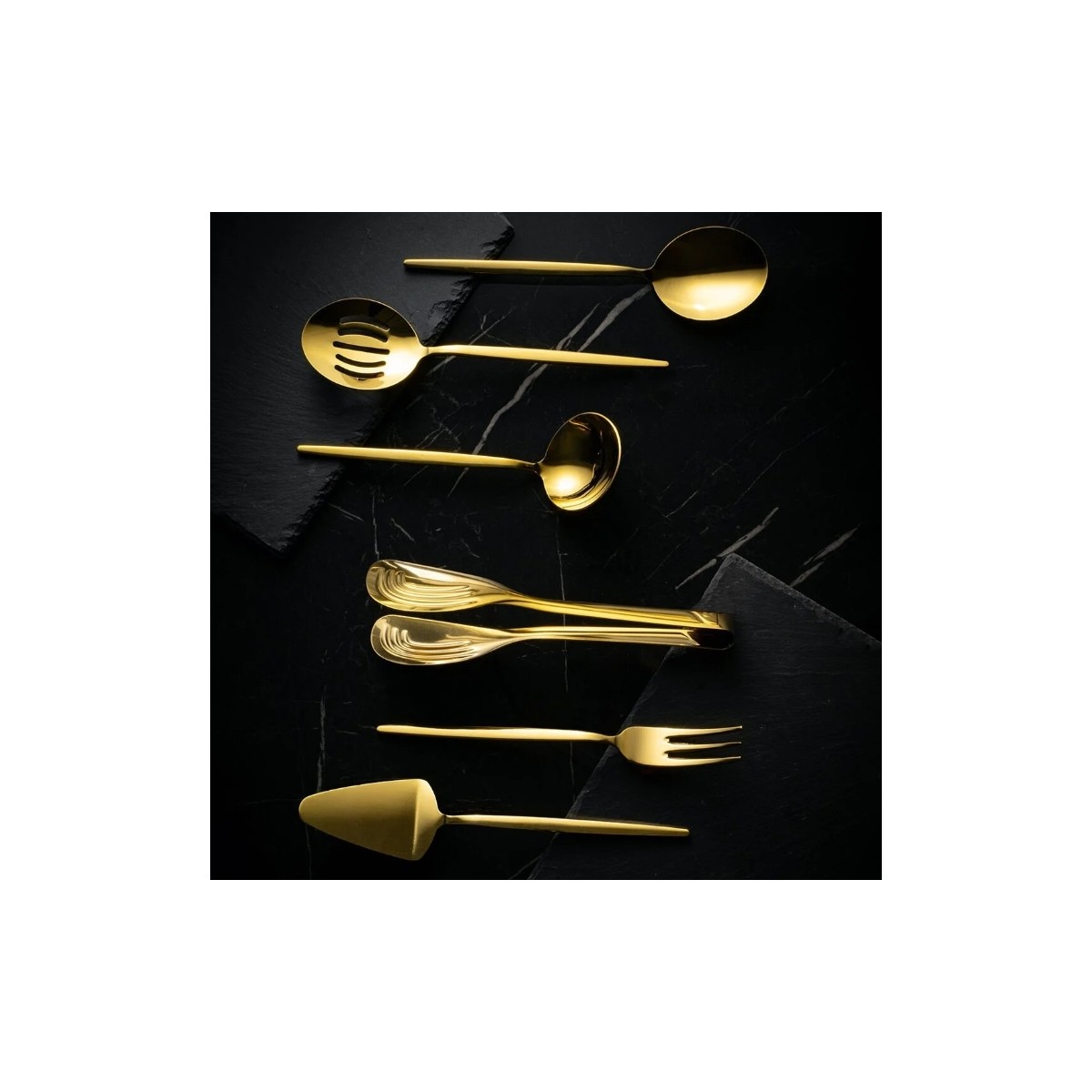 Altın Işıltısıyla Sofraların Yeni Yıldızı: Fecra Luxe GoldSofra sunumlarında şıklığı ve zarafeti bir arada arayanlar için tasarlanan Fecra Luxe Gold 6 Parça Servis Seti, 18/10 paslanmaz çelik kalitesini altın kaplamanın ışıltısıyla buluşturuyor.Her parçası, yemek sunumlarınızı yalnızca bir servis değil, aynı zamanda bir şıklık ritüeline dönüştürmek için özenle tasarlandı.Kusursuz Tasarım, Üstün Kalite304 kalite çelik gövde, uzun ömürlü kullanım ve parlak görünüm sunarken; altın kaplama yüzey, sofralarınıza göz kamaştıran bir lüks dokunuş ekliyor.3 mm kalınlığındaki sos kaşıkları, kepçeler ve spatula sağlamlık hissini güçlendirirken, 1.5 mm kalınlığındaki maşa hafifliğiyle pratik kullanım sağlıyor.Her Sunuma ÖzelGerek günlük sofralarınızda gerekse davetlerde; soslar, salatalar, tatlılar ve mezeler için ideal boyutlara sahip bu set, her öğünü özel bir deneyime dönüştürür. Modern ve zarif çizgileriyle klasik sofralara da modern masalara da uyum sağlar.Malzeme: 18/10 Paslanmaz Çelik (304 kalite)Kaplama: AltınParça Sayısı: 6 ParçaÜrün İçeriği: Sos Kaşık – 3 mmSos Kepçe – 3 mmSos Çatal – 3 mmSos Kevgir – 3 mmSos Spatula – 3 mmMaşa – 1.5 mmTemizlik: Elde yıkama önerilir