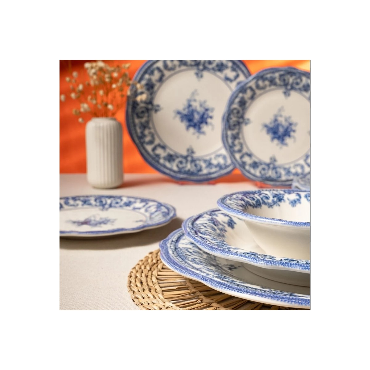 Zamansız Şıklığın YansımasıFecra Majestic Blue Yemek Takımı, tarihî porselen sanatının estetiğini günümüze taşıyor. Asaletin rengi mavi, beyazın zarafetiyle birleşerek sofralarda göz alıcı bir kontrast yaratıyor. Klasik desenlerin modern formda yeniden yorumlandığı bu set, sofranıza zamansız bir karakter kazandırıyor.Sanatsal Desenlerle Sofra SanatıHer tabakta yer alan ince çiçek motifleri, el işçiliğini hatırlatan detaylara sahip. Desenlerdeki mavi ton geçişleri, geleneksel porselen estetiğini çağdaş bir çizgiyle harmanlıyor. Misafir sofralarında dikkat çekici bir duruş sunarken, günlük kullanımlarda da sade bir zarafet hissi veriyor.Porselenin Işıltısı, Fecra KalitesiyleYüksek kaliteli porselen malzeme, hem dayanıklılığı hem de pürüzsüz yüzeyiyle öne çıkıyor. Parlak yüzey kaplaması, renklerin uzun yıllar canlı kalmasını sağlarken, kenar kısımlardaki zarif hatlar koleksiyonun premium dokusunu vurguluyor.6 Kişilik Kusursuz Sofra Düzeni24 parçadan oluşan bu set, dört farklı tabak tipiyle 6 kişilik eksiksiz bir yemek deneyimi sunar. Servis, çukur, pasta ve kase tabaklarının ideal ölçüleri sayesinde hem klasik hem modern sunumlarda mükemmel denge sağlanır.Koleksiyon Ruhunu Taşıyan Sofralar İçinMajestic Blue Koleksiyonu’nun seçkin ruhunu yansıtan bu set, hediye olarak da benzersiz bir tercihtir. Fecra’nın özgün tasarımıyla, geleneksel sofra kültürünü modern yaşamın zarafetiyle buluşturur.Ürün BilgileriSeri: Majestic Blue KoleksiyonMalzeme: PorselenKapasite: 6 KişilikParça Sayısı: 24 ParçaSet İçeriği:6 Adet Servis Tabağı (25 cm)6 Adet Çukur Yemek Tabağı (21 cm)6 Adet Pasta Tabağı (20 cm)6 Adet Kase (15 cm)