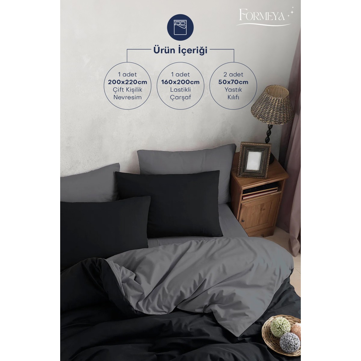 Formeya Lastikli Çarşaflı Nevresim Takımı Çift Kişilik ;
