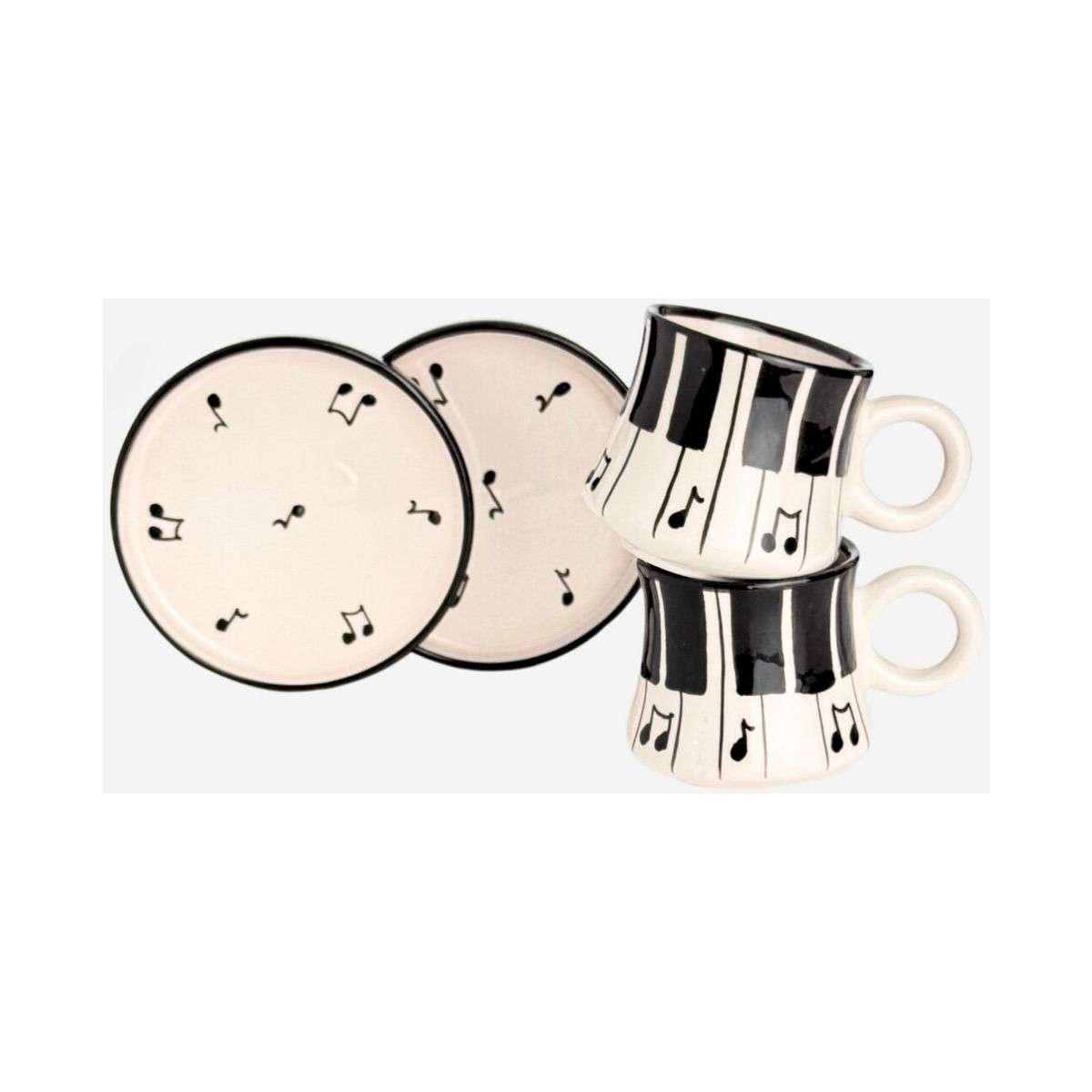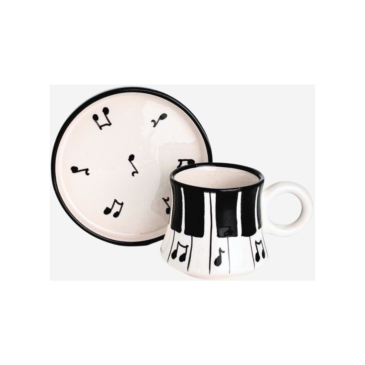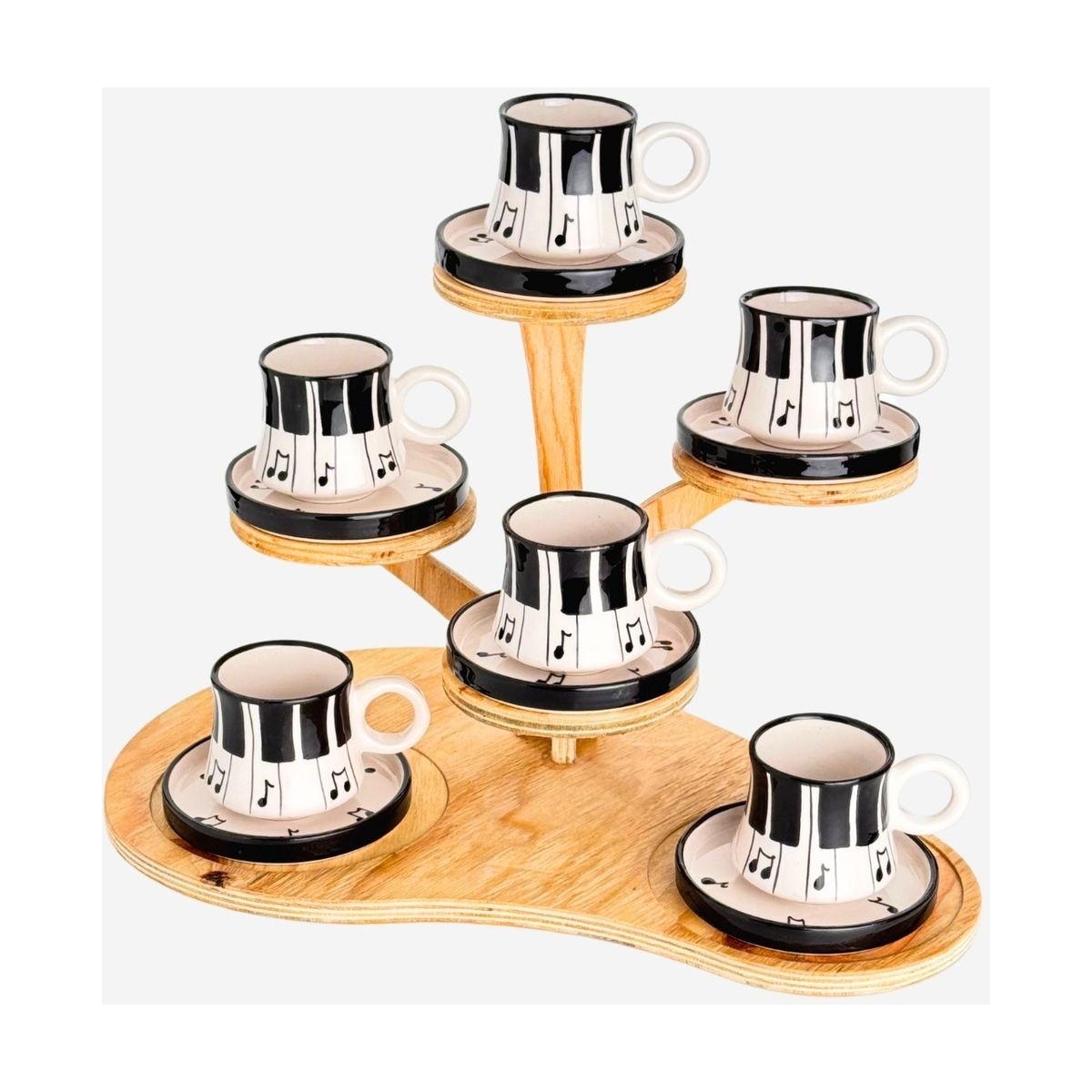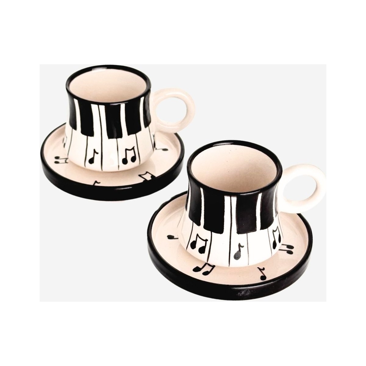 Gezdikçe Bilelim 6’lı Takım Piyano Desenli El Yapımı Kazan Seramik Kahve Fincanı, Kahve Fincanı